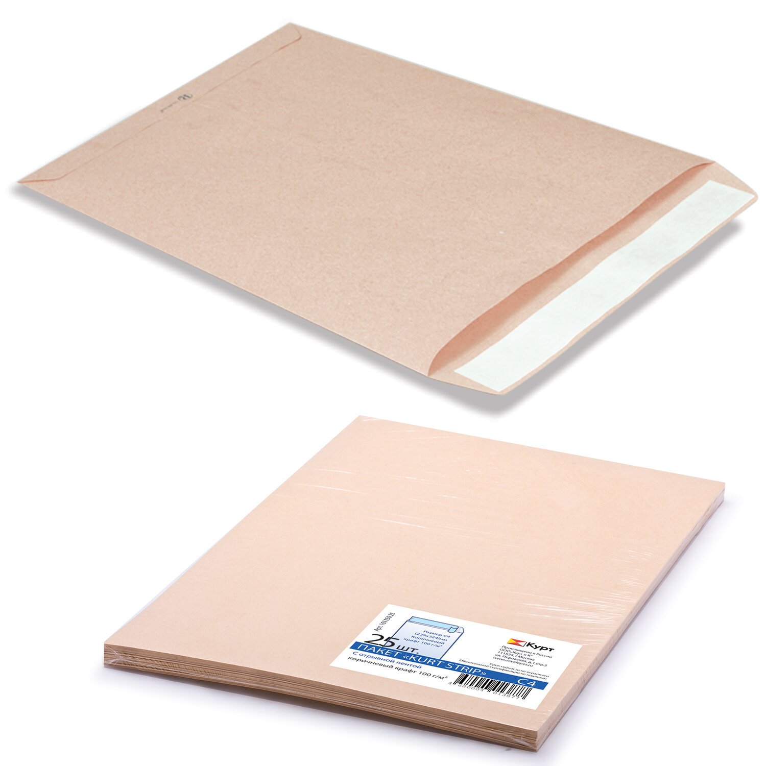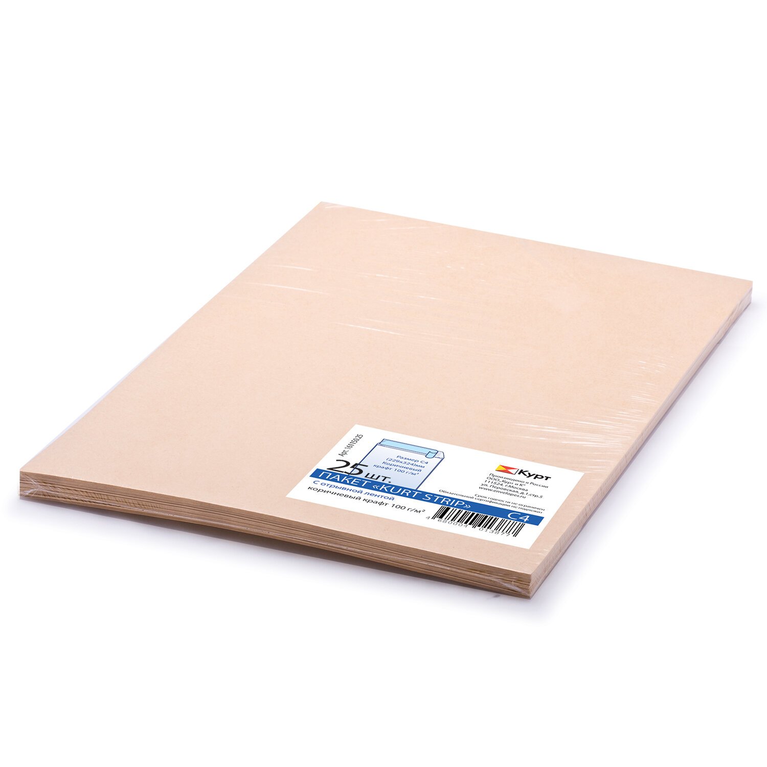 Конверт-пакеты С4 плоские (229х324 мм), до 90 листов, крафт-бумага, отрывная полоса, КОМПЛЕКТ 25 шт., 161150.25
