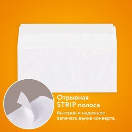 Конверты Е65 (110х220 мм), отрывная лента, 80 г/м2, КОМПЛЕКТ 1000 шт.