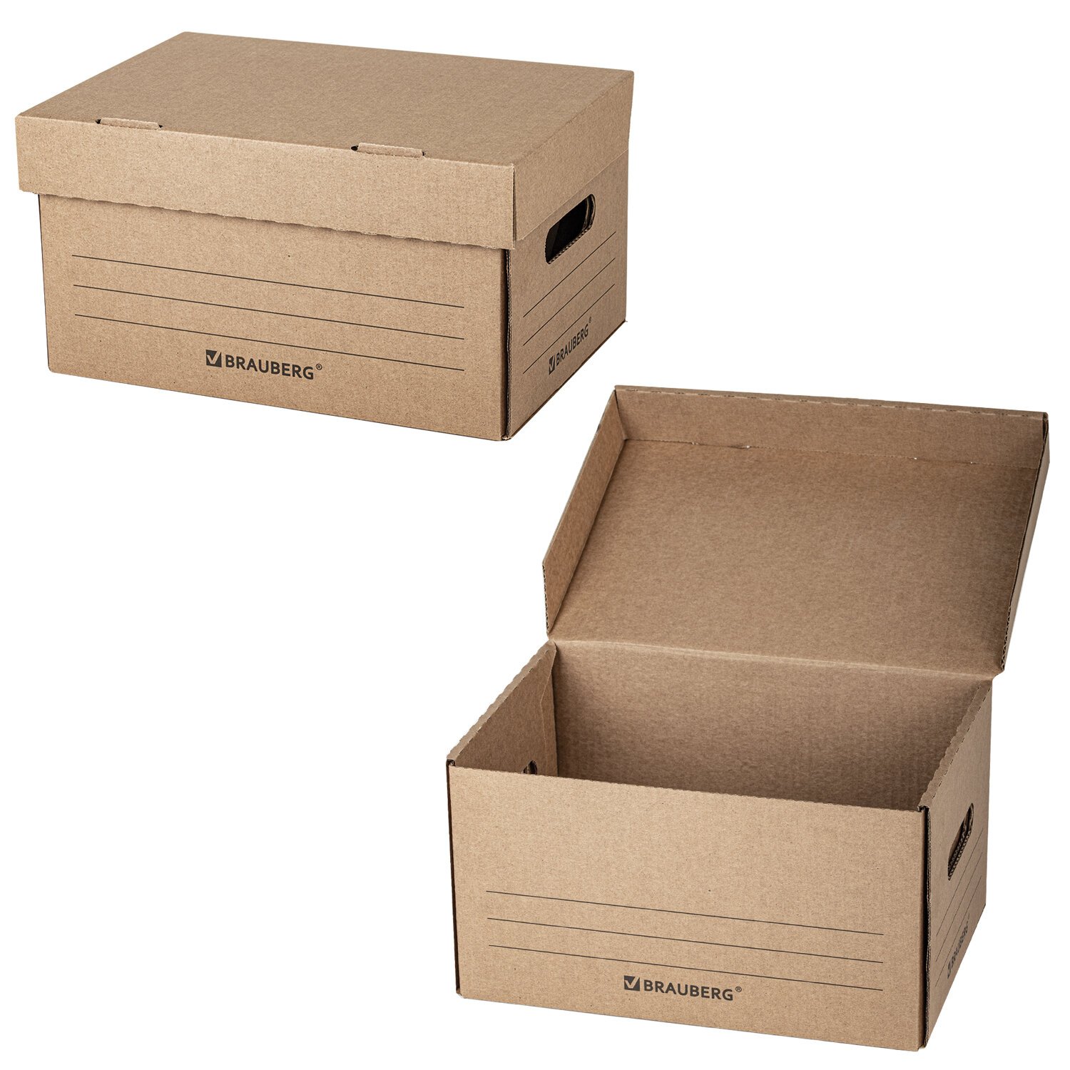 Архивный короб BRAUBERG предназначен для хранения и перевозки документов в накопителях или папках-регистраторах. Изготовлен из 100% первичной целлюлозы марки Т-24, профиль «В».