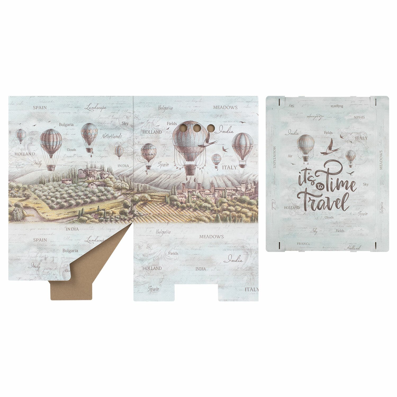 Короб отлично держит форму, а для удобства перемещения на боковых сторонах имеются декоративные отверстия. Разноцветный рисунок в виде темы путешествий не позволит коробам затеряться на полках и стеллажах в вашей квартире или офисе.