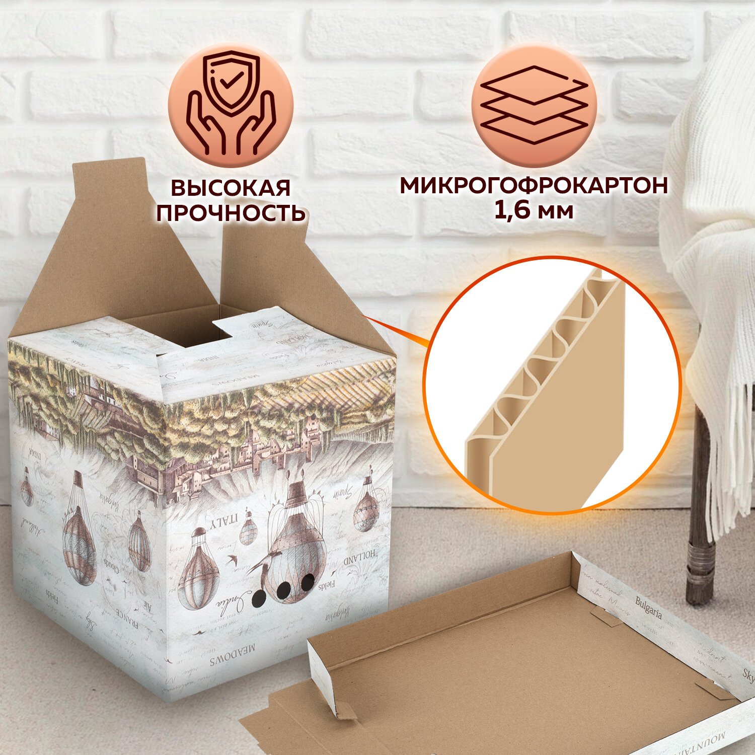 В комплект входят 3 короба размером 31,5 х 31,5 х 31,5 см со съемными крышками, изготовленные из плотного экологичного микрогофрокартона толщиной 1,6 мм.