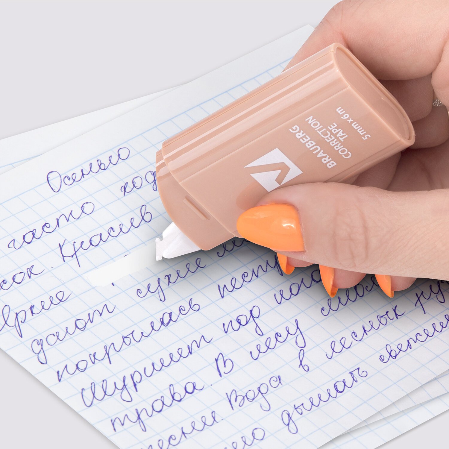 С помощью корректирующей ленты BRAUBERG вы сможете легко и незаметно исправлять любые копии, тексты и документы. Она не требует времени на высыхание после нанесения, что делает её особенно удобной в использовании. Кроме того, она не оставляет следов и черных полос на документе при копировании или отправке по факсу, обеспечивая плотное и равномерное покрытие.
