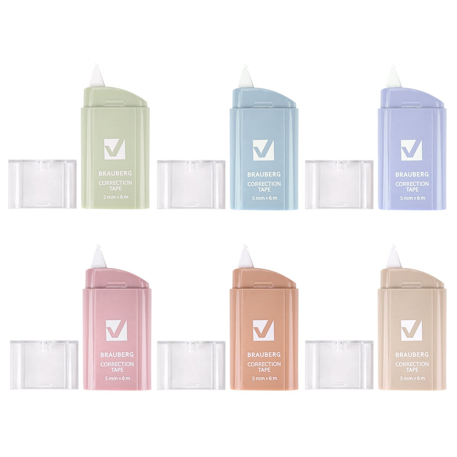 Корректирующая лента BRAUBERG COMPACT PASTEL, 5 мм х 6 м, КОМПЛЕКТ 6 штук, пенал с zip-lock, 272496
