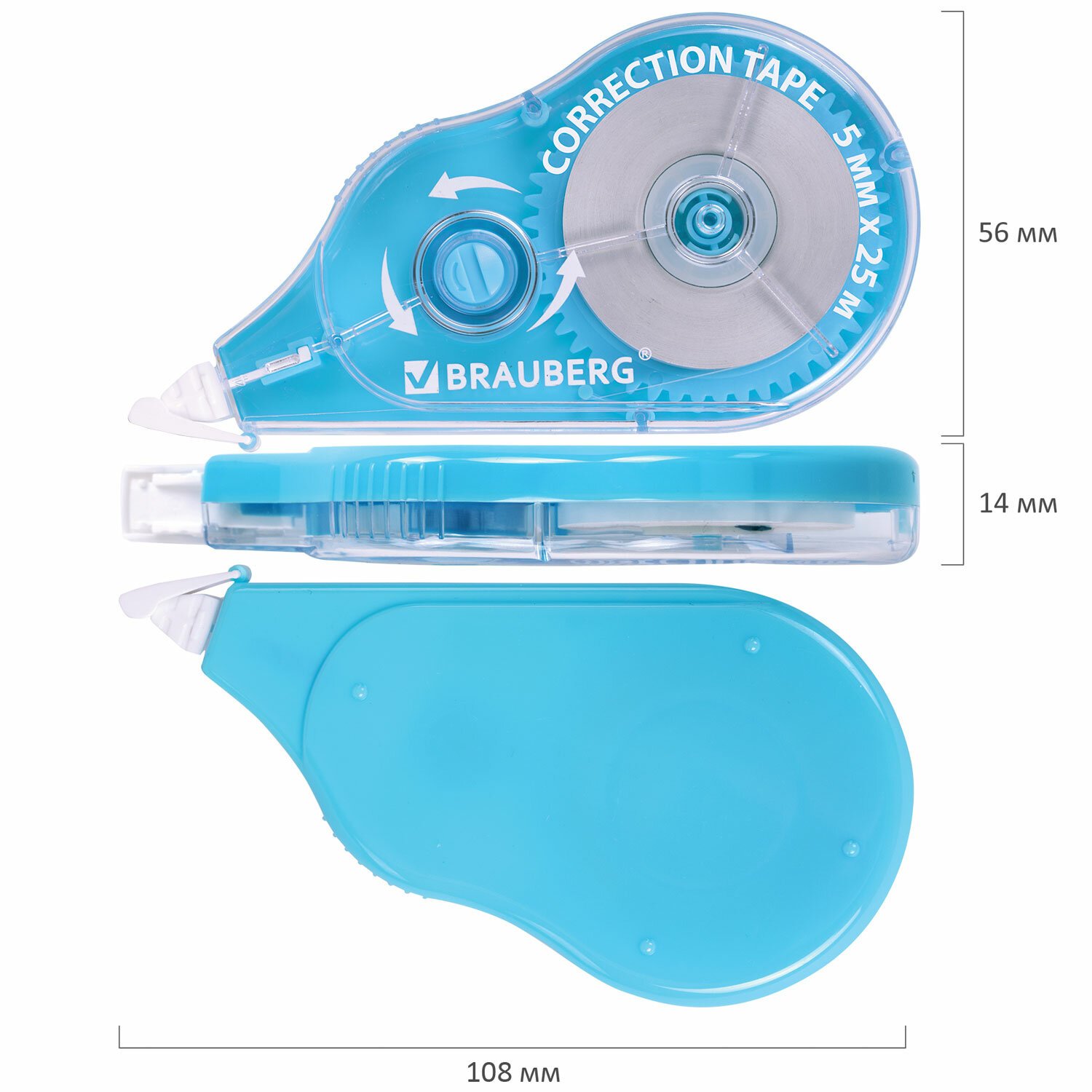 Корректирующая лента BRAUBERG MAXI PLUS, 5 мм х 25 м, механизм перемотки, корпус голубой, блистер, 272500