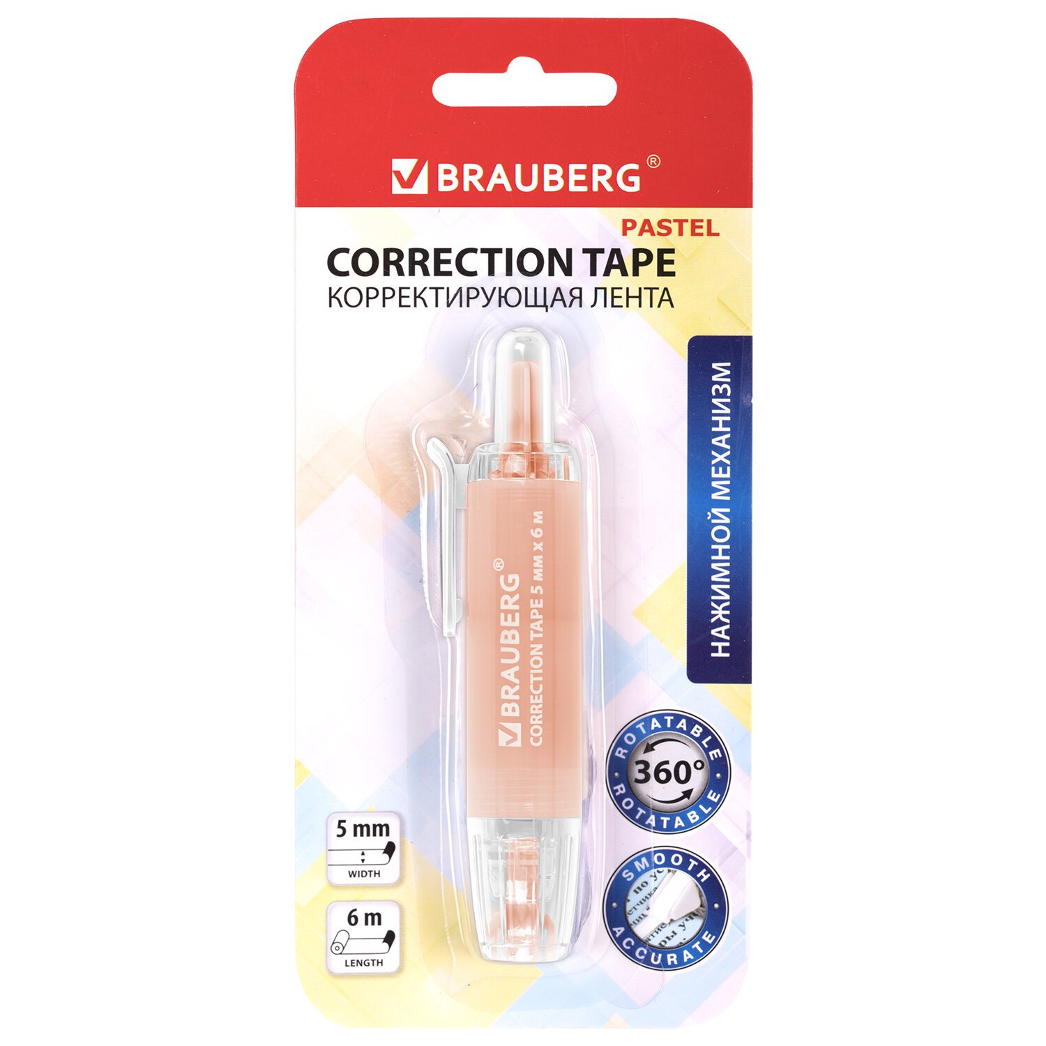 Корректирующая лента BRAUBERG PASTEL 360, 5 мм х 6 м, ассорти, автоматическая, блистер, 272662