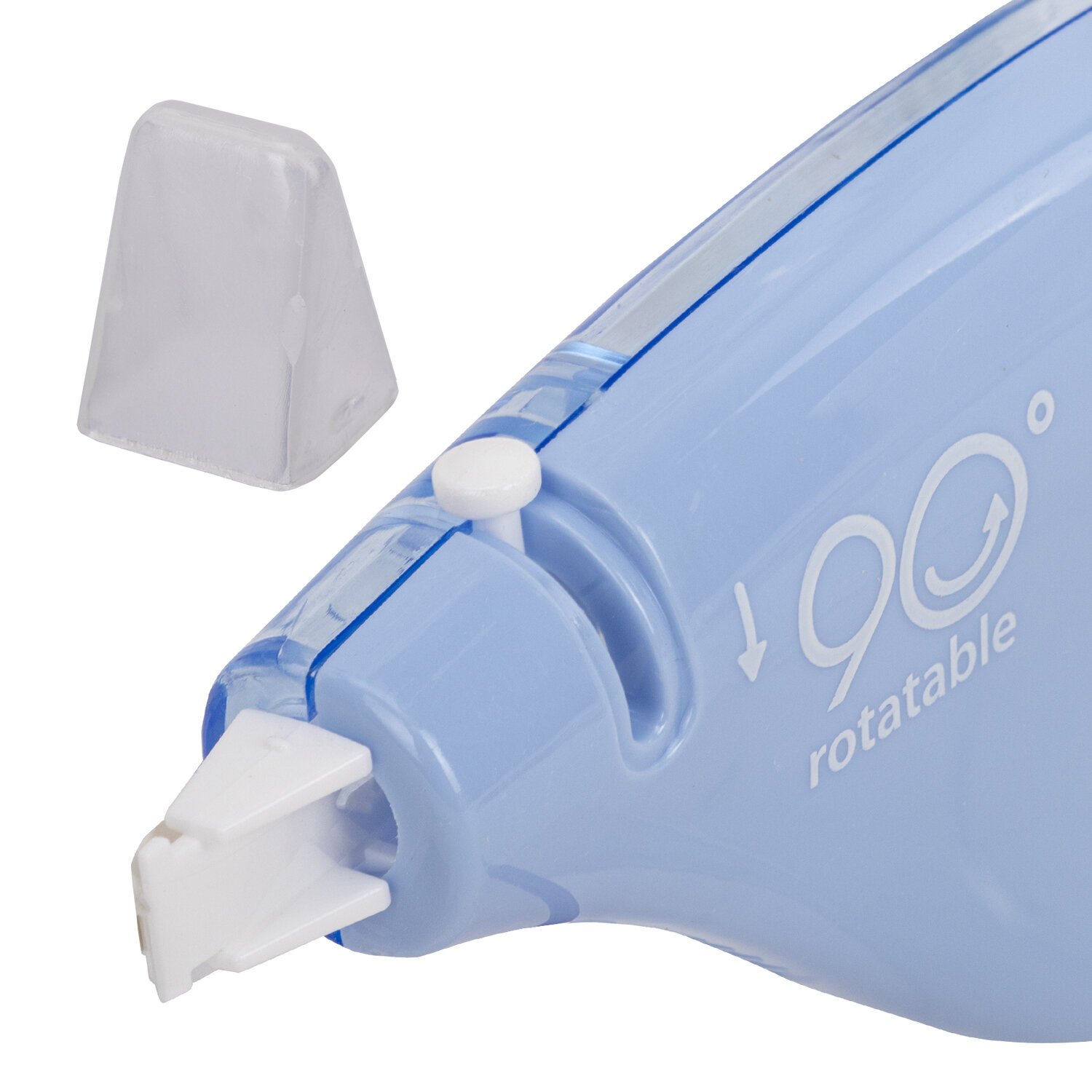 Корпус лент выполнен в трех пастельных цветах: мятный, нежный желтый и небесно-голубой. Корректирующая лента оснащена переключателем, с помощью которого вы можете повернуть наконечник на 90°. Размер удобен для хранения в школьном пенале. Намотка одной ленты составляет 12 м – ее хватит надолго, также имеется механизм перемотки. Колпачок надежно защищает ленту от высыхания и загрязнения, позволяя ей всегда оставаться чистой и готовой к использованию.