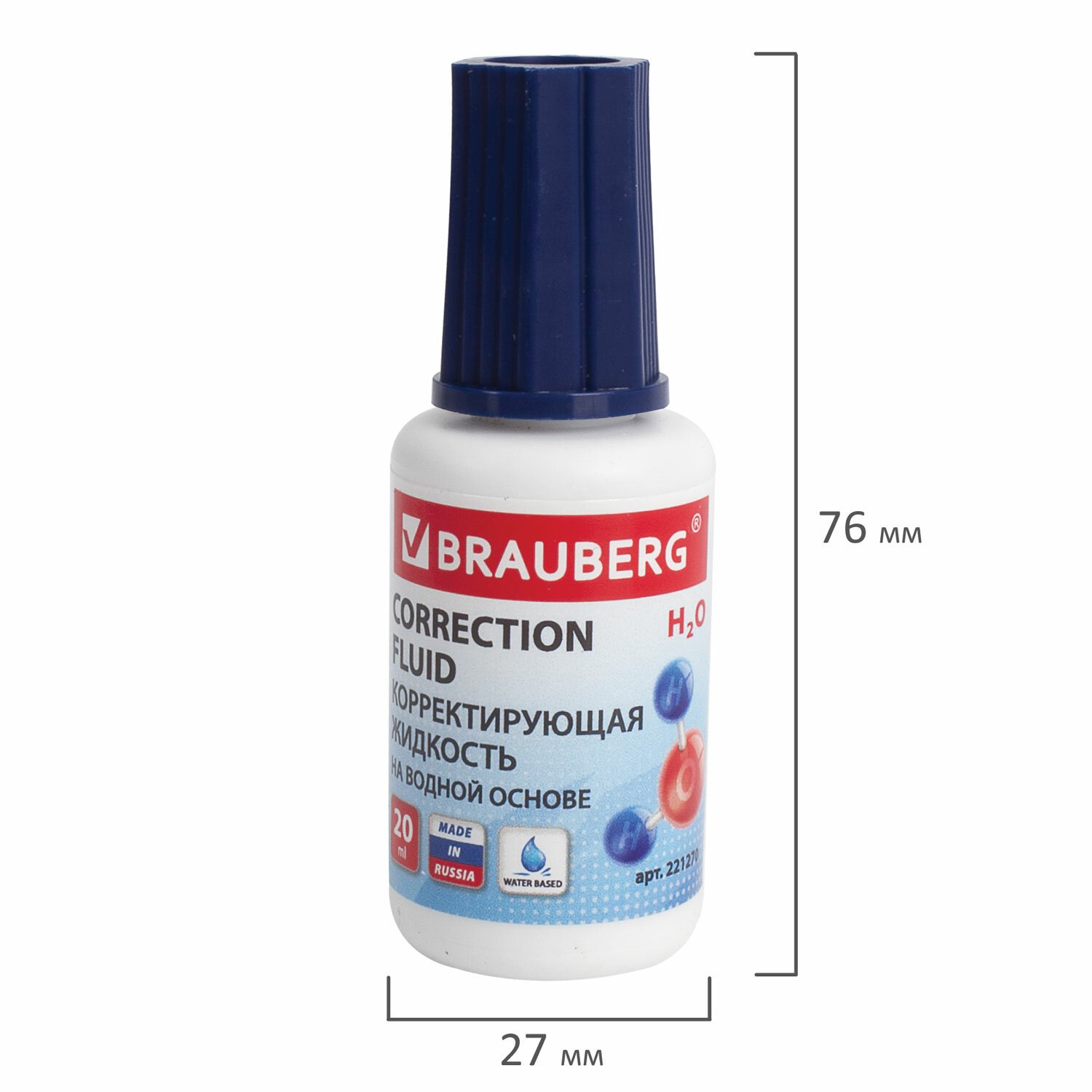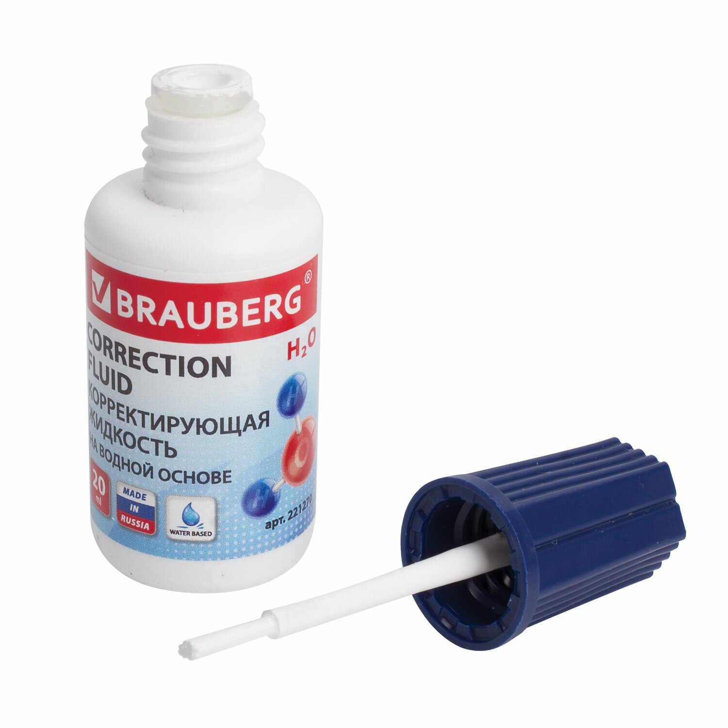 Корректирующая жидкость BRAUBERG на водной основе, 20 мл, с кисточкой, 221270