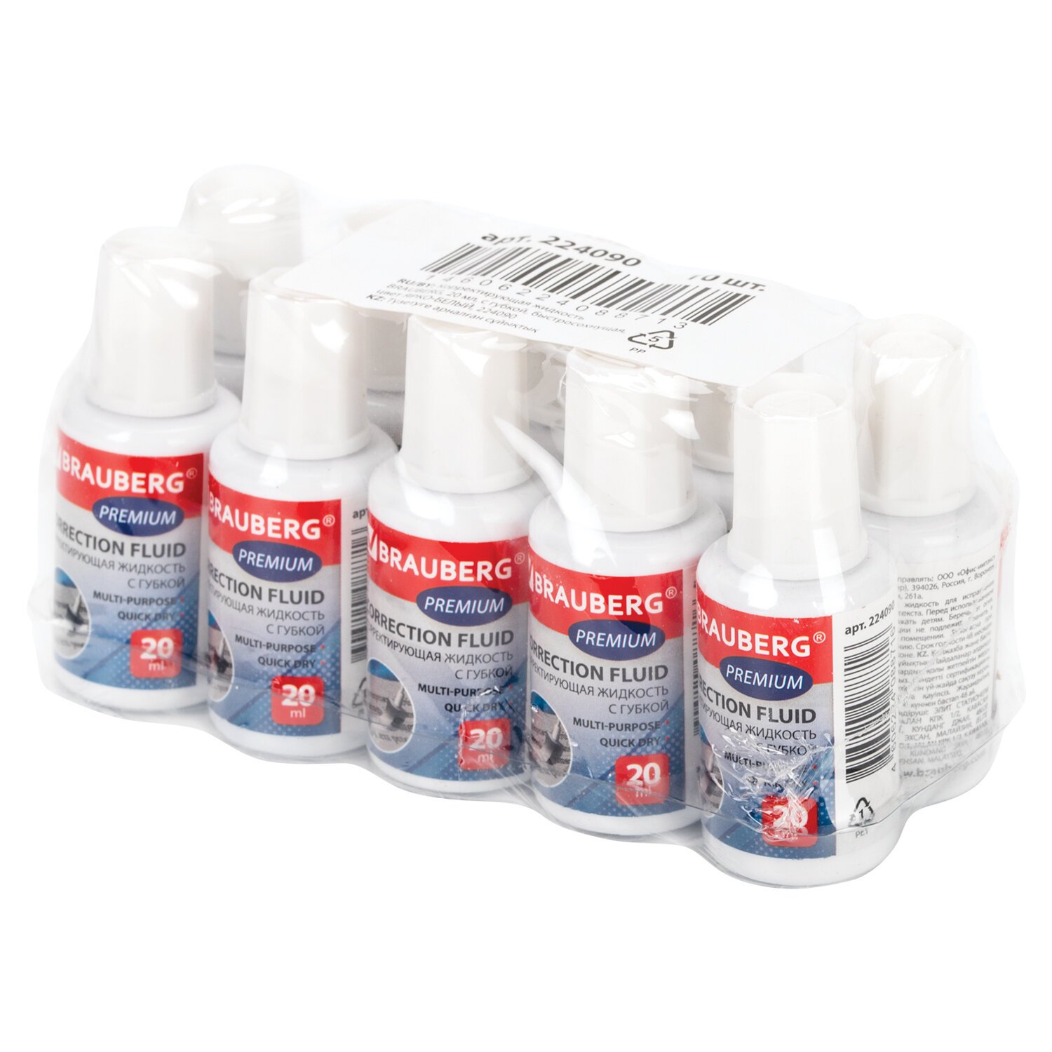 Корректирующая жидкость BRAUBERG "Premium" быстросохнущая, 20 мл, с губчатым аппликатором, 224090