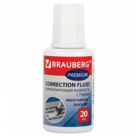 Корректирующая жидкость BRAUBERG EXTRA быстросохнущая, 20 мл, с кисточкой, 229397