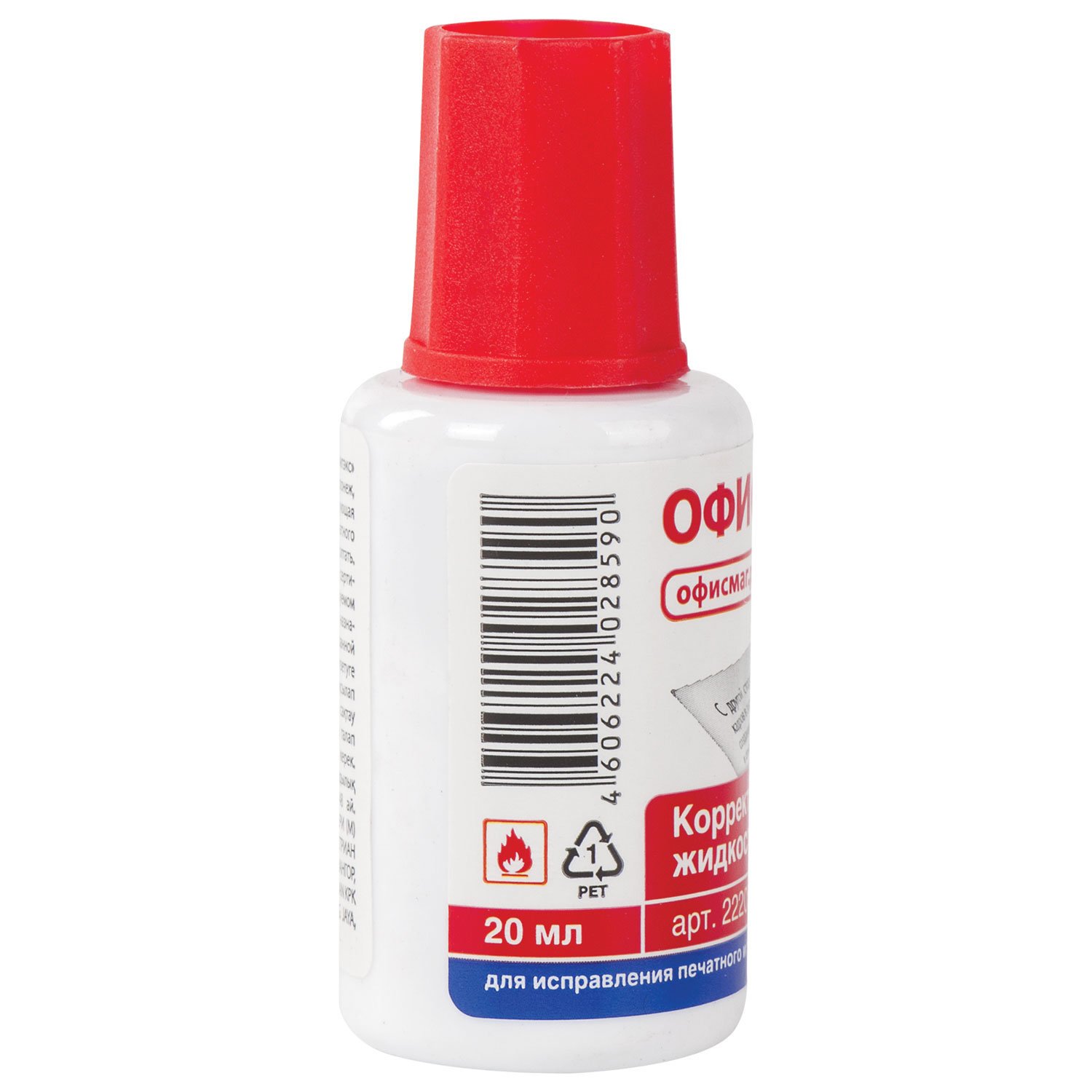 Корректирующая жидкость ОФИСМАГ, быстросохнущая, 20 мл, с кисточкой, 222079