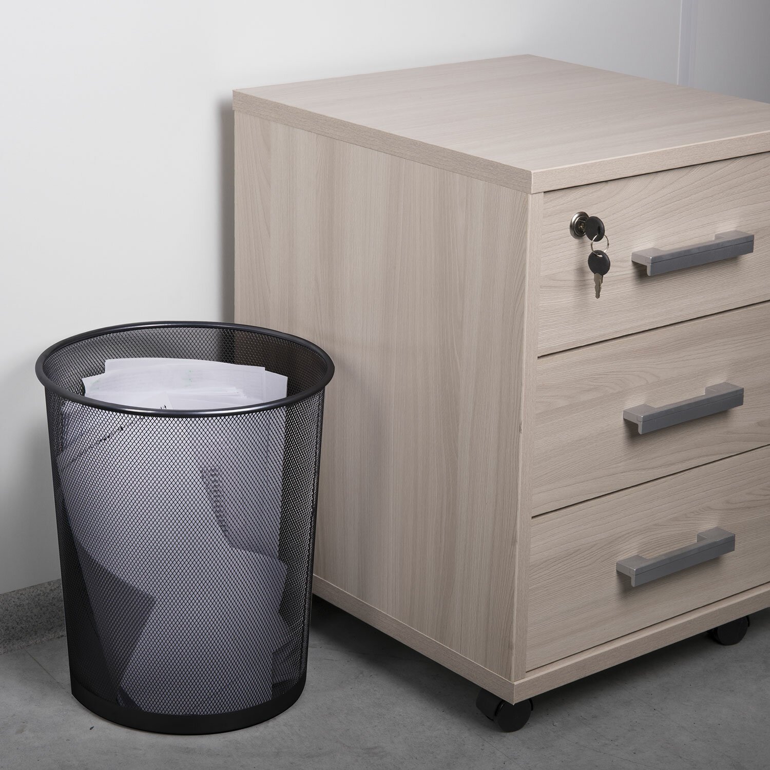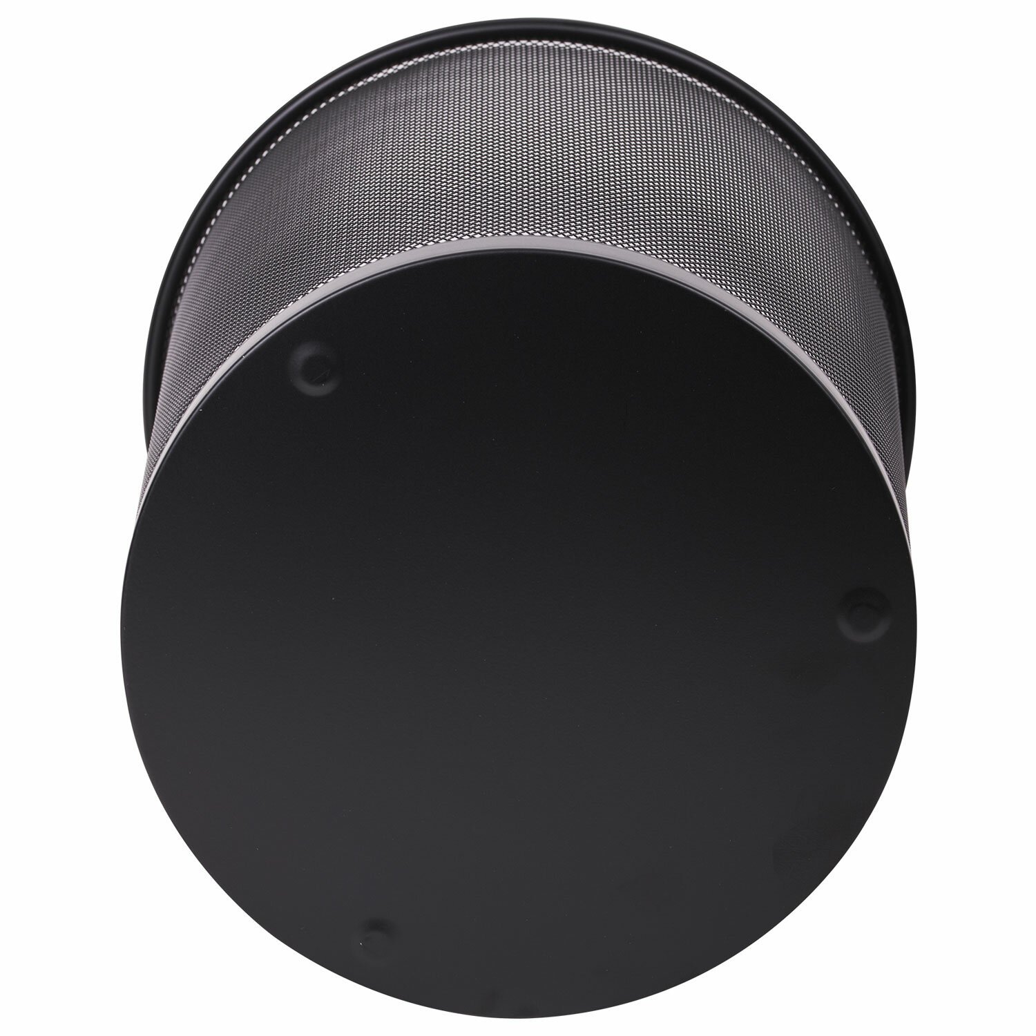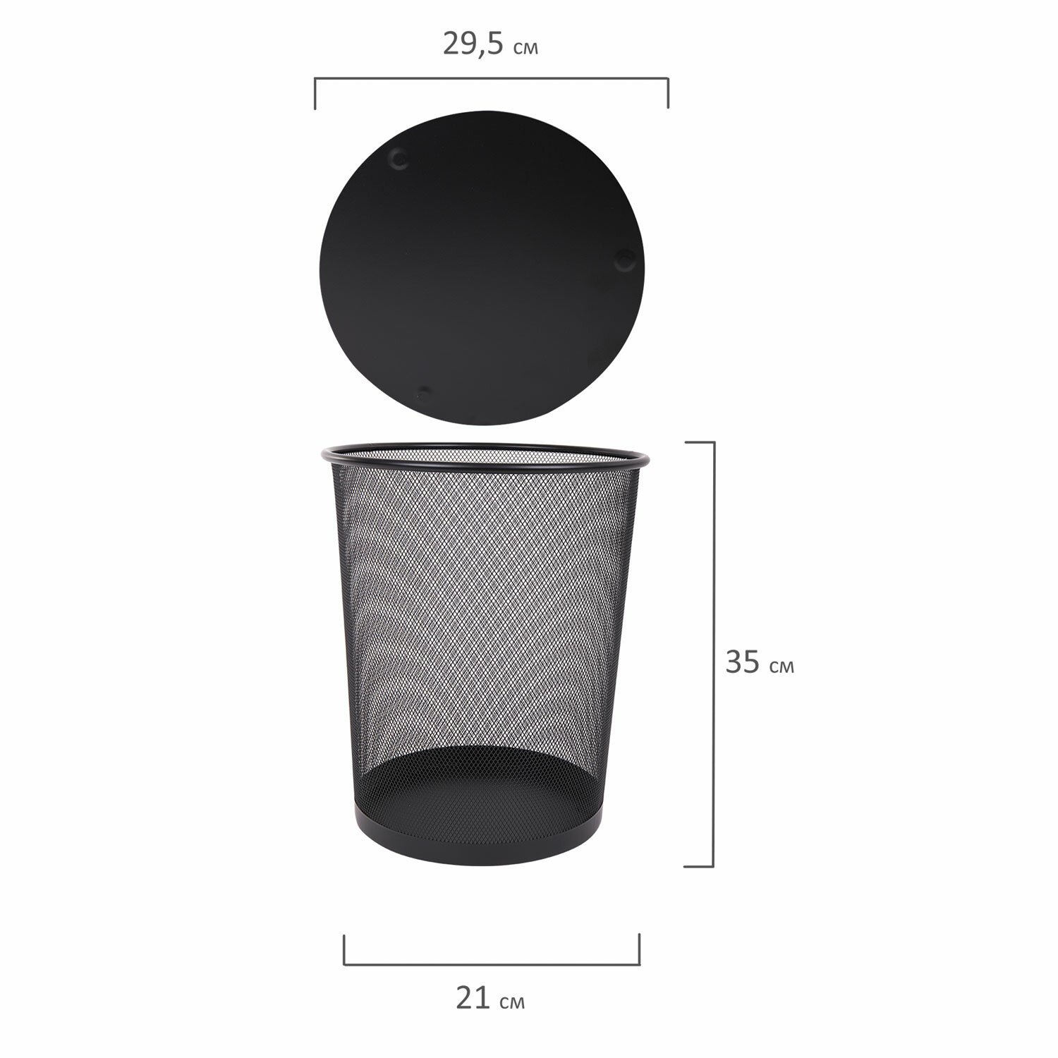 Изготовлена из металлической сетки черного цвета. Благодаря объему 20 литров способна вместить большое количество мусора. Корпус расширяется к верху: диаметр основания составляет 21 см, а диаметр верхней части – 29,5 см. Легкость и компактность корзины позволяет перемещать ее с одного места на другое. Корзина удобно помещается под рабочим столом. Рекомендуемый размер мешка для мусора – 50х60 см, объем – до 30 литров.