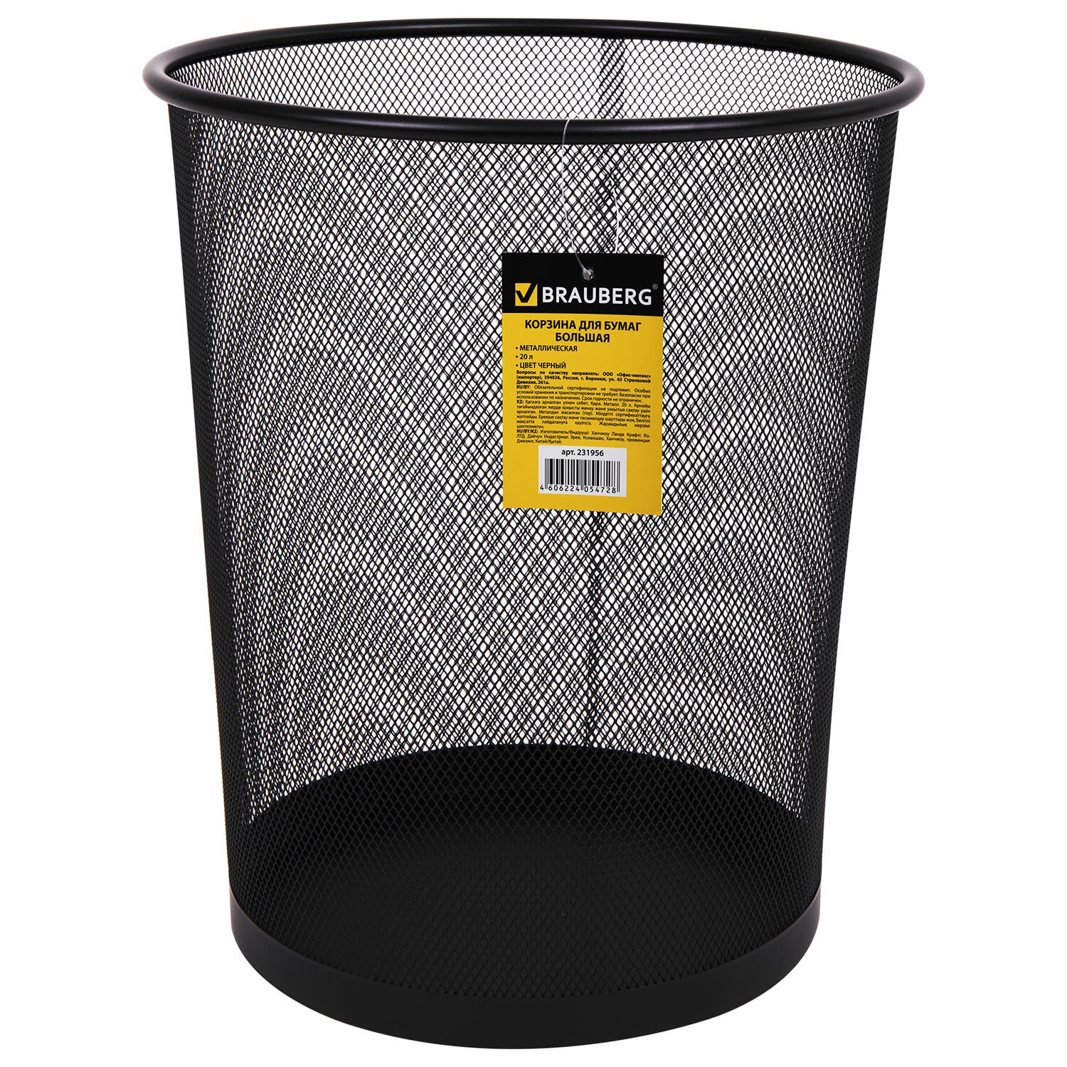 Корзина для бумаг БОЛЬШАЯ, 20 л, металлическая, черная, BRAUBERG "Germanium", 231956