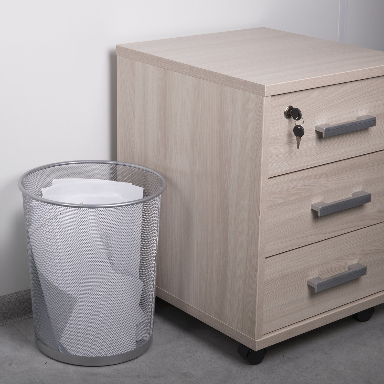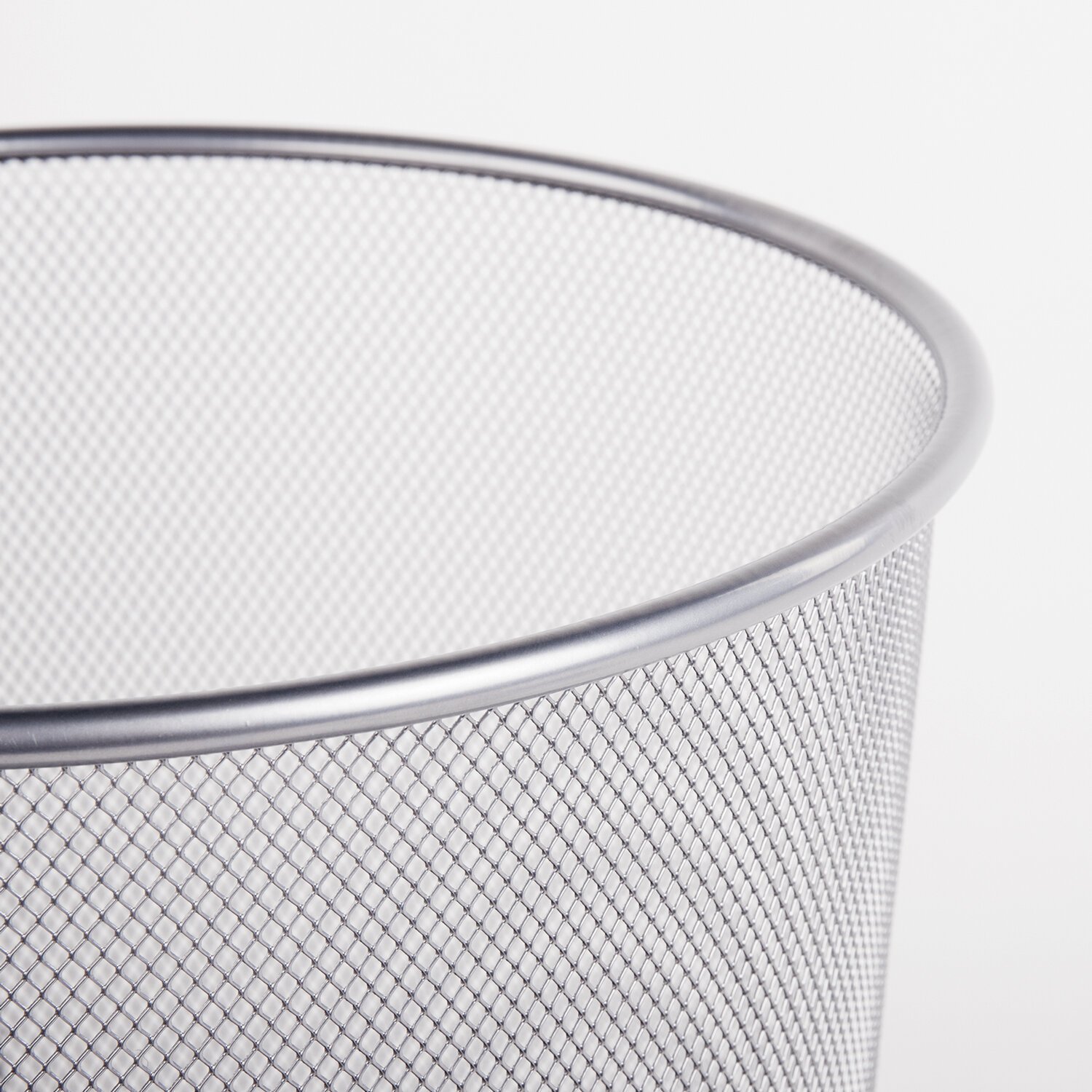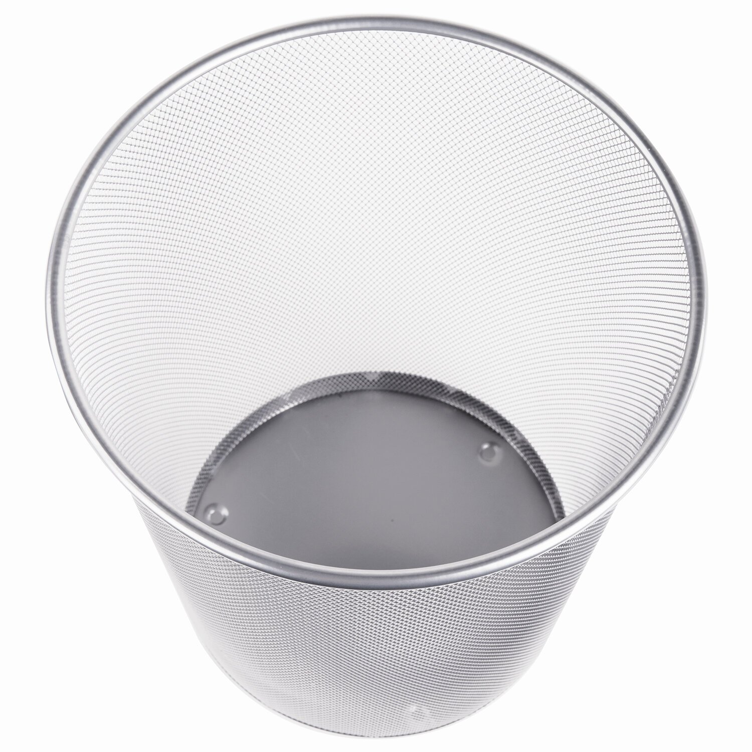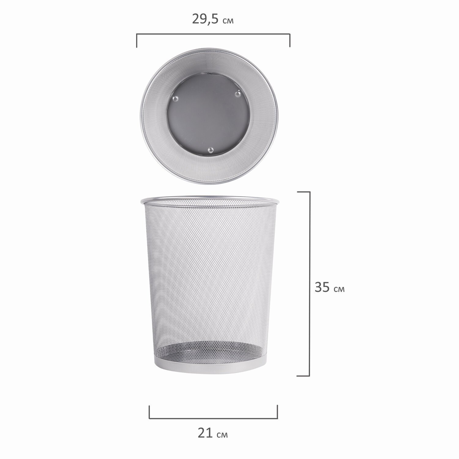 Изготовлена из металлической сетки серебристого цвета. Благодаря объему 20 литров способна вместить большое количество мусора. Корпус расширяется к верху: диаметр основания составляет 21 см, а диаметр верхней части – 29,5 см. Высота – 35 см. Легкость и компактность корзины позволяет перемещать ее с одного места на другое. Корзина удобно помещается под рабочим столом. Рекомендуемый размер мешка для мусора – 50х60 см, объем – до 30 литров.