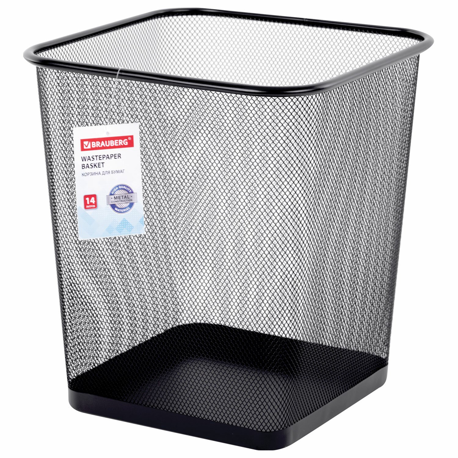 Корзина для бумаг квадратная 17 литров, BRAUBERG "Germanium", металл, черная, 237975