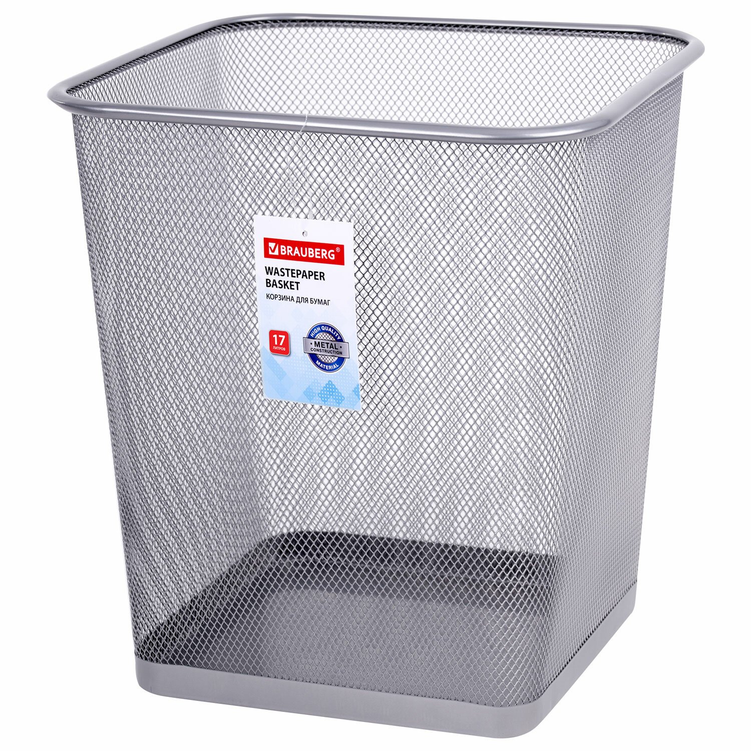 Изготовлена из металлической сетки серебристого цвета. Объем – 17 л. Легкость и компактность корзины позволяют перемещать ее с одного места на другое. Квадратная форма позволяет удобно разместить корзину под рабочим столом.