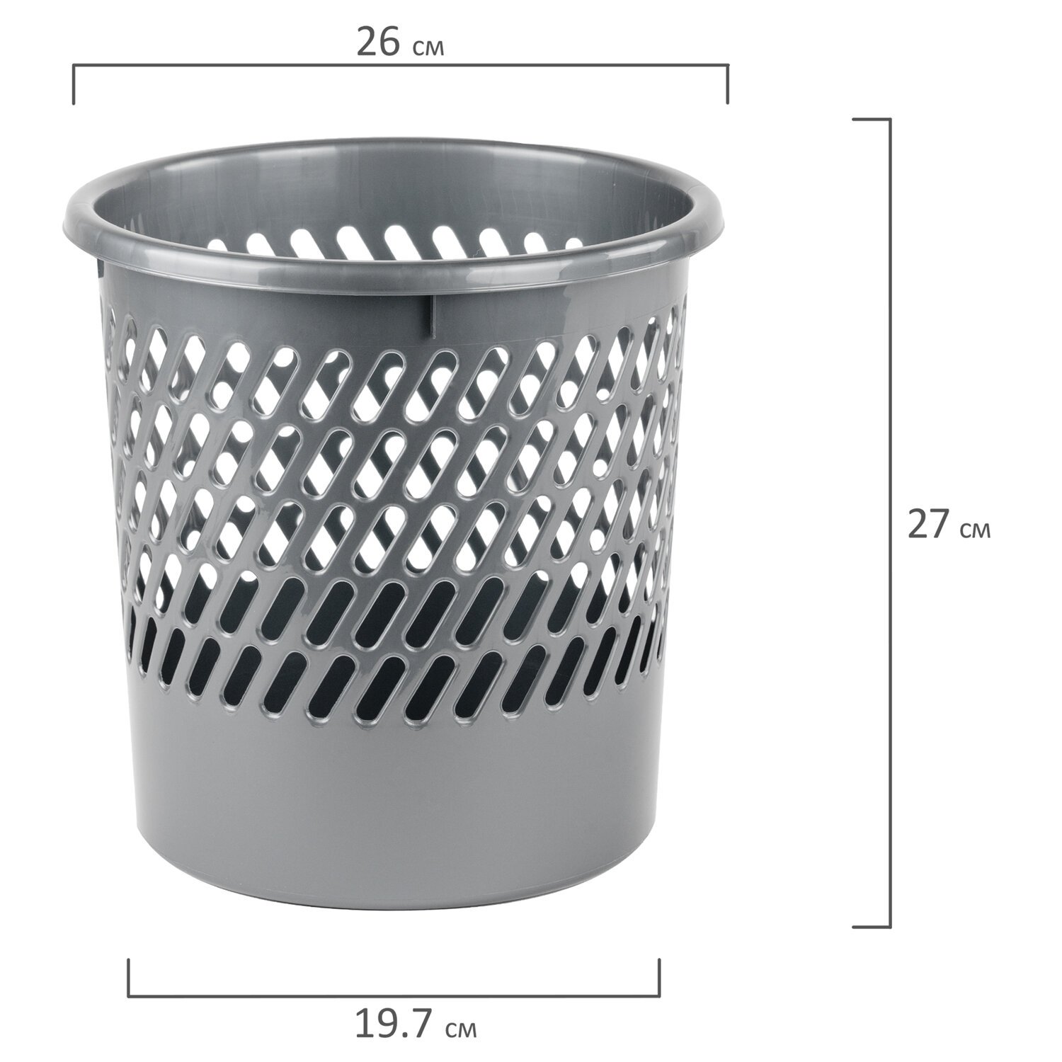 Корзина для бумаг, 11 л, сетчатая, серая, BRAUBERG, 230442