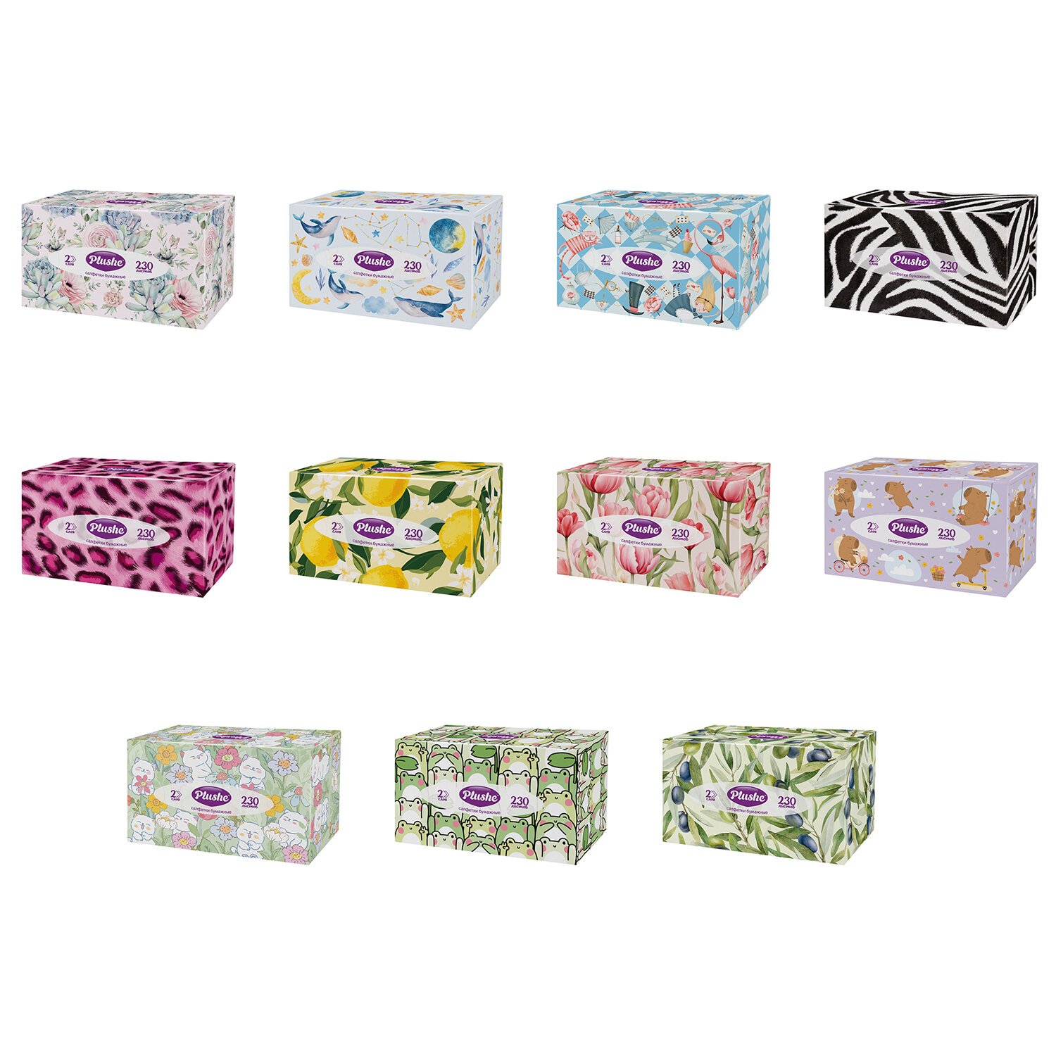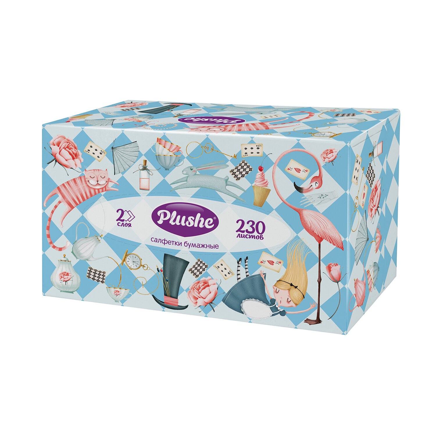 Салфетки бумажные в коробочках, Plushe 230 листов, 2х слойные, V-сложение