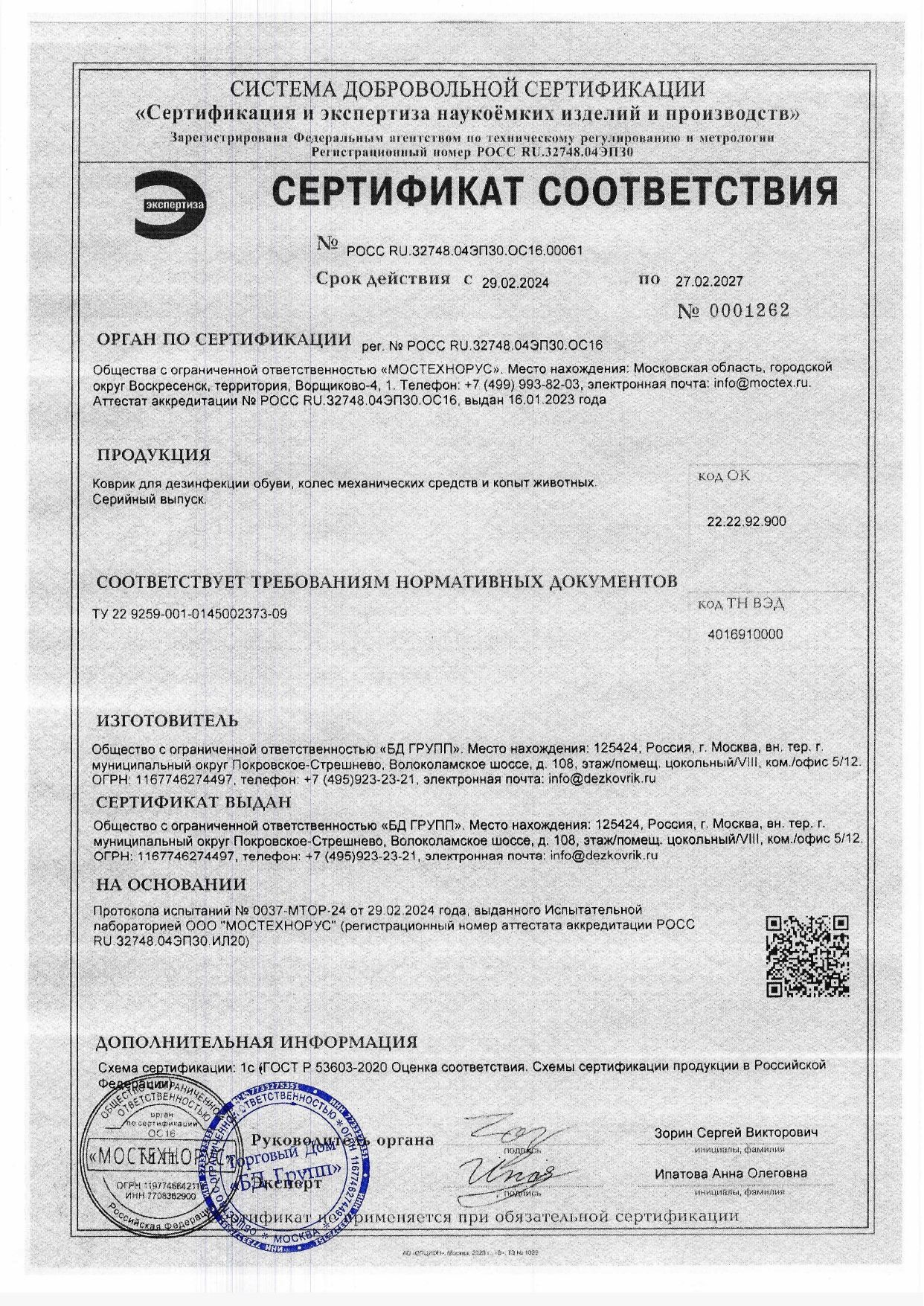 | Тип коврика | дезмат |