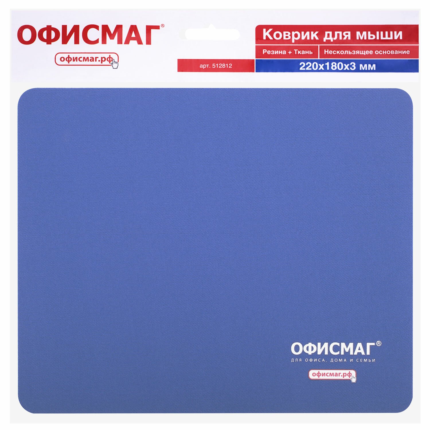 Коврик для мыши ОФИСМАГ, резина+ткань, 220х180х3 мм, 512812