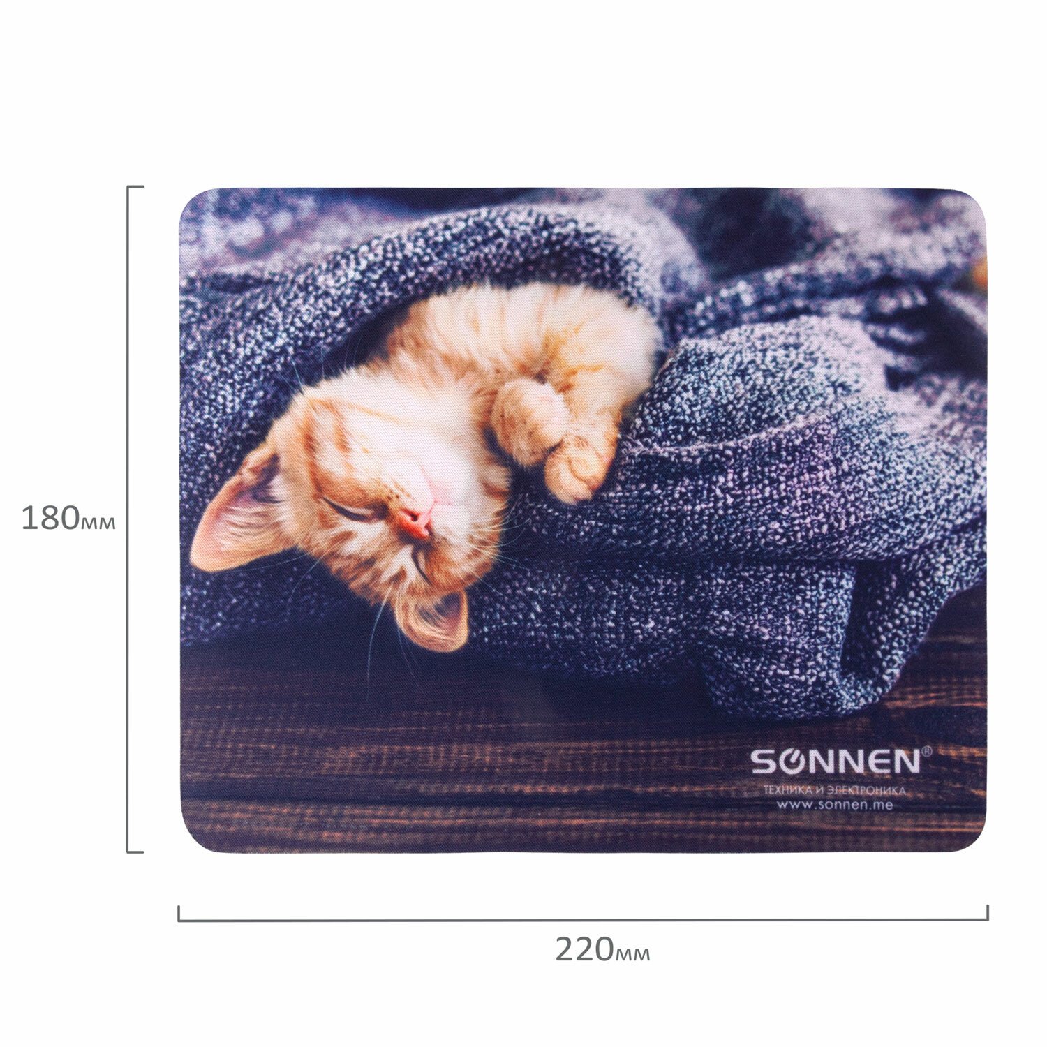 Коврик для мыши SONNEN "KITTEN", резина + ткань, 220х180х3 мм, 513313