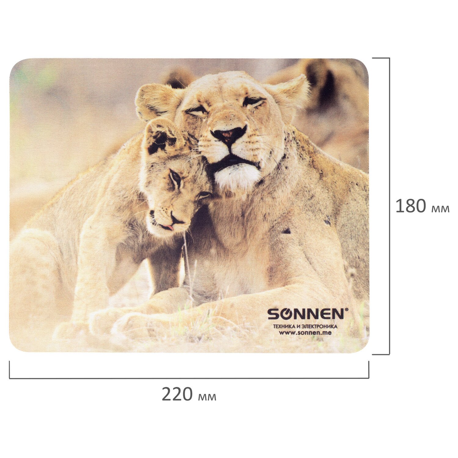 Коврик для мыши SONNEN "LIONS", резина + ткань, 220х180х3 мм, 513310