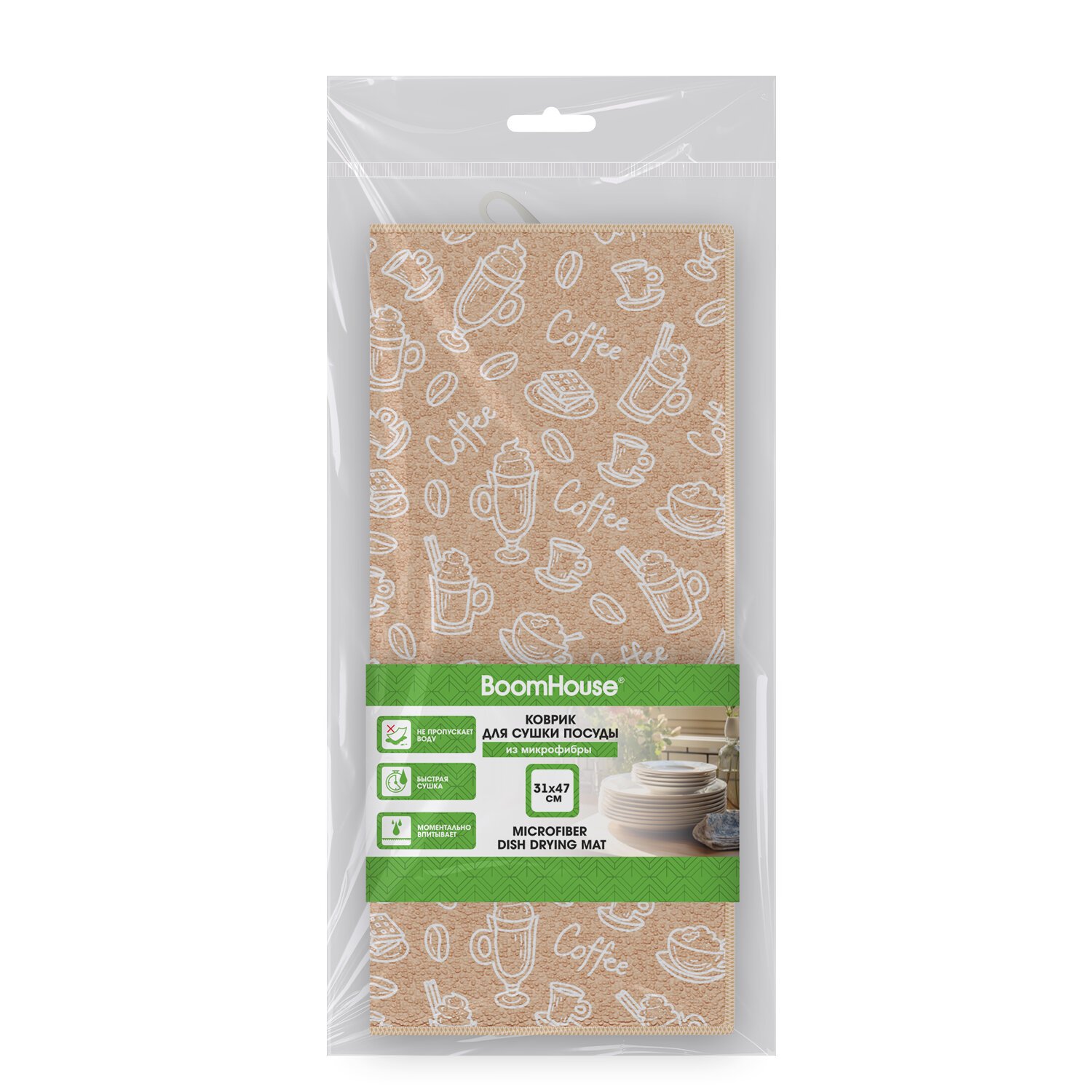 Коврик для сушки посуды из микрофибры, 31х47см, "КОФЕ", 440г/м2, BOOMHOUSE (БумХаус), 701155