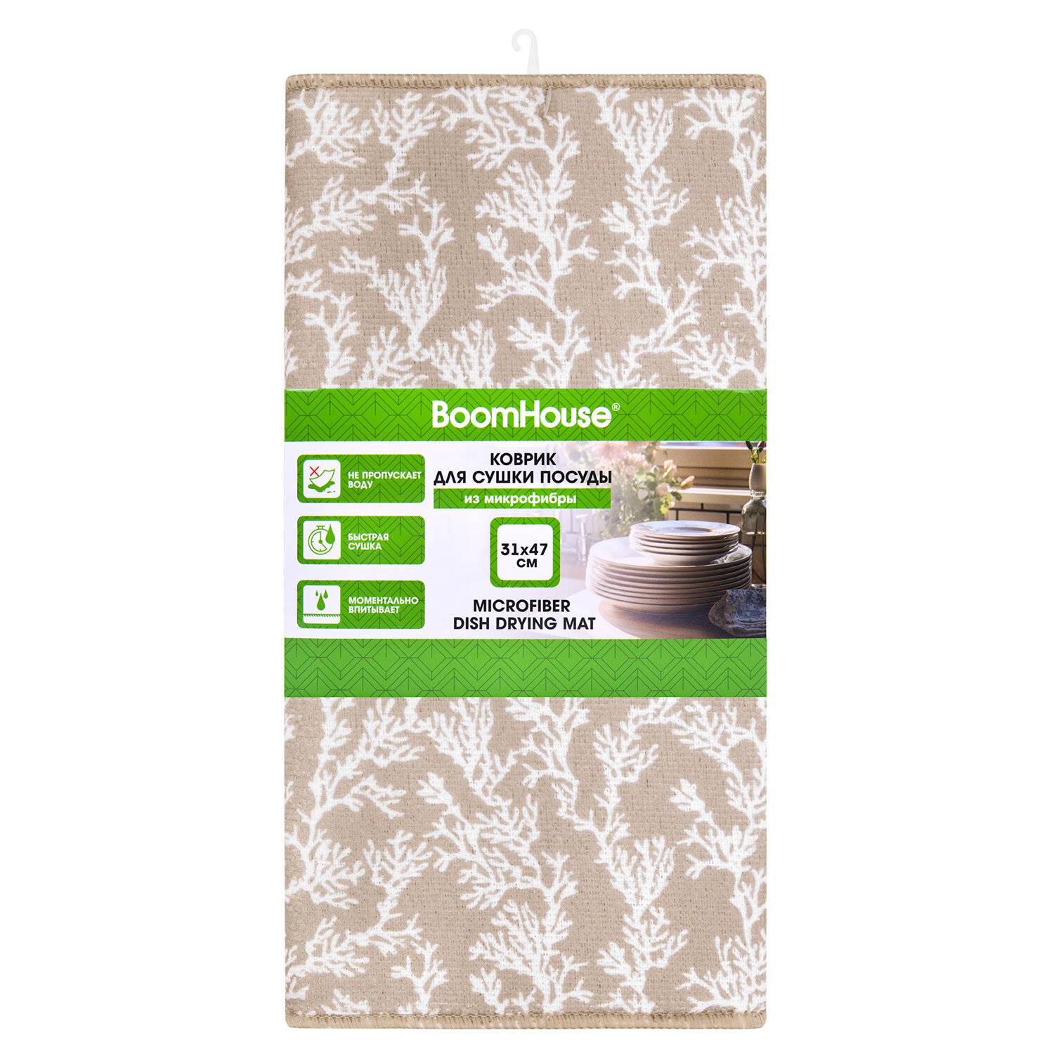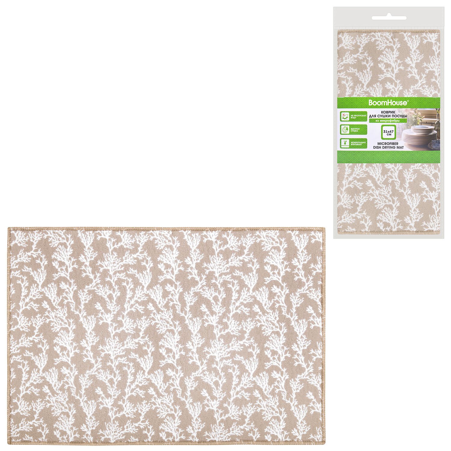Коврик для сушки посуды из микрофибры, 31х47см, "КОРАЛЛЫ", 440г/м2, BOOMHOUSE (БумХаус), 701158