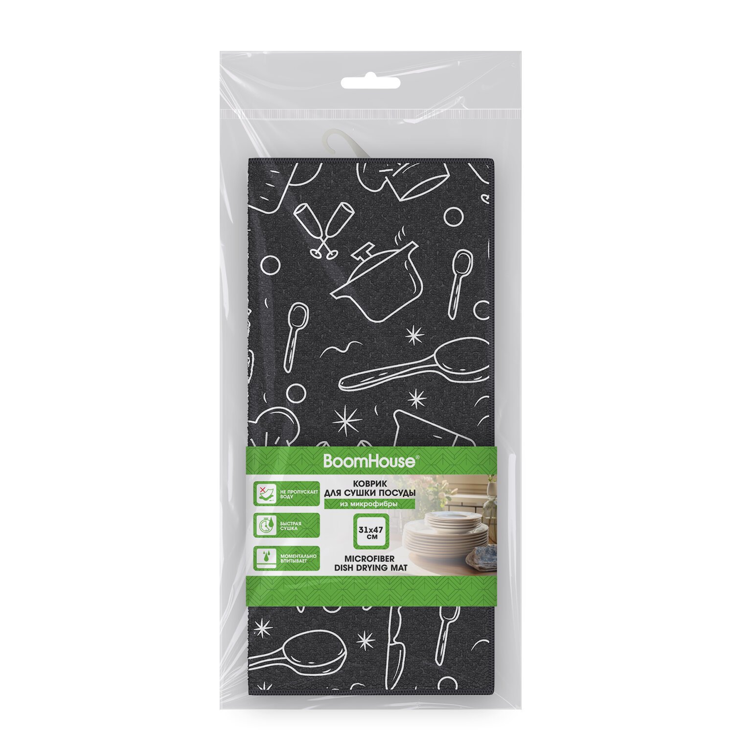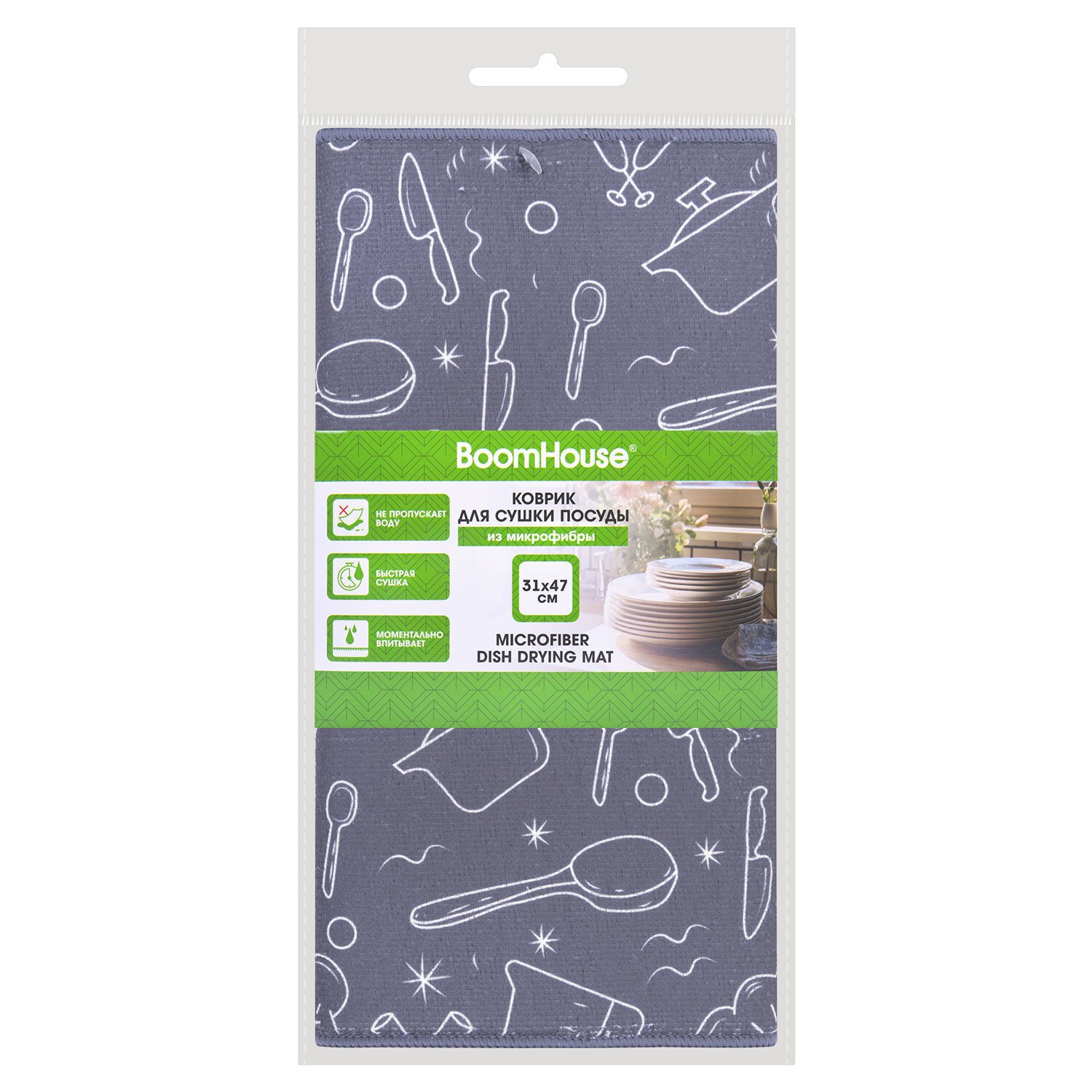 Коврик для сушки посуды BOOMHOUSE – это современное гигиеничное решение для быстрой сушки любой посуды.