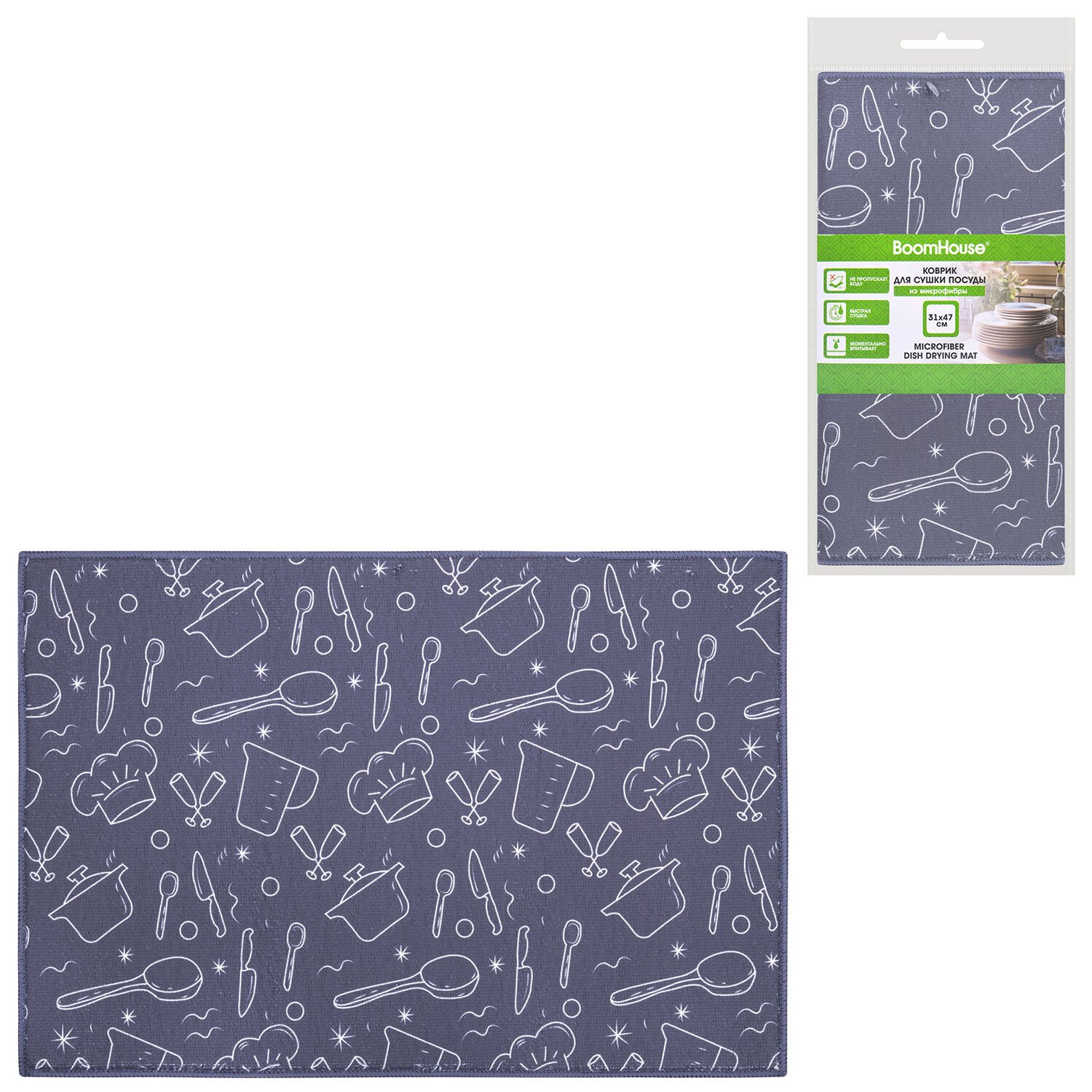 Коврик для сушки посуды из микрофибры, 31х47см, "КУХНЯ", 440г/м2, BOOMHOUSE (БумХаус), 701154