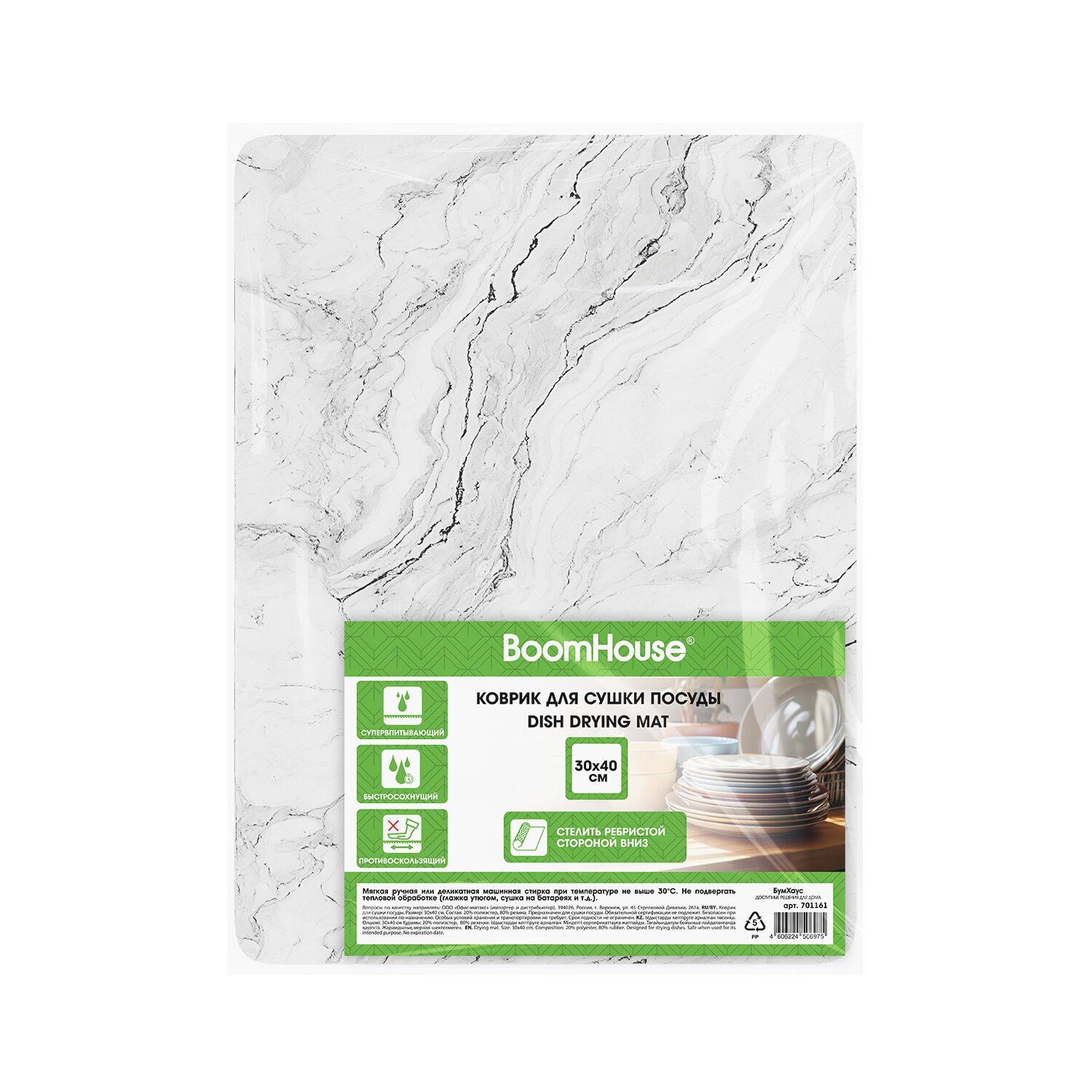 Нано-коврик для сушки посуды BOOMHOUSE - это современное гигиеничное решение для кухни, объединяющее в себе высокую функциональность и инновационные материалы.