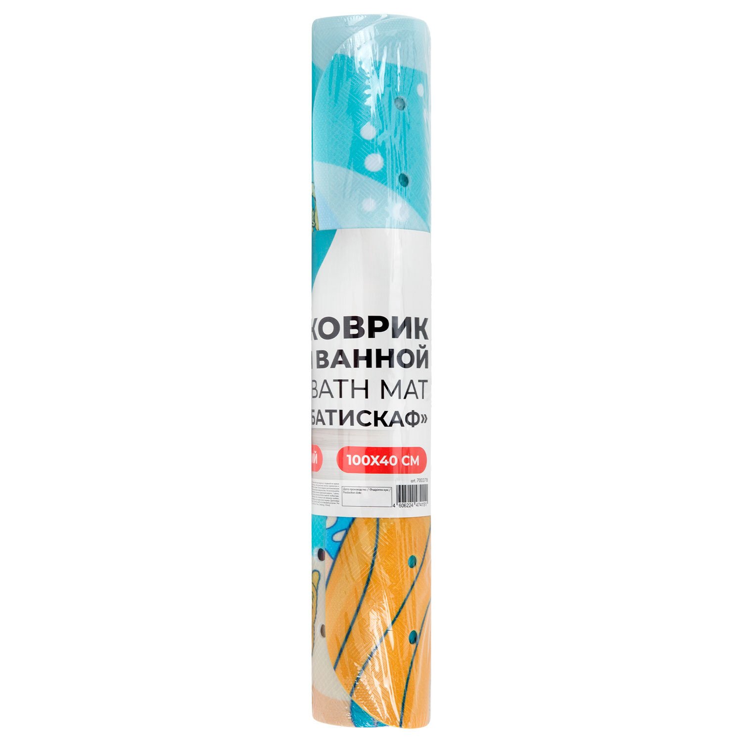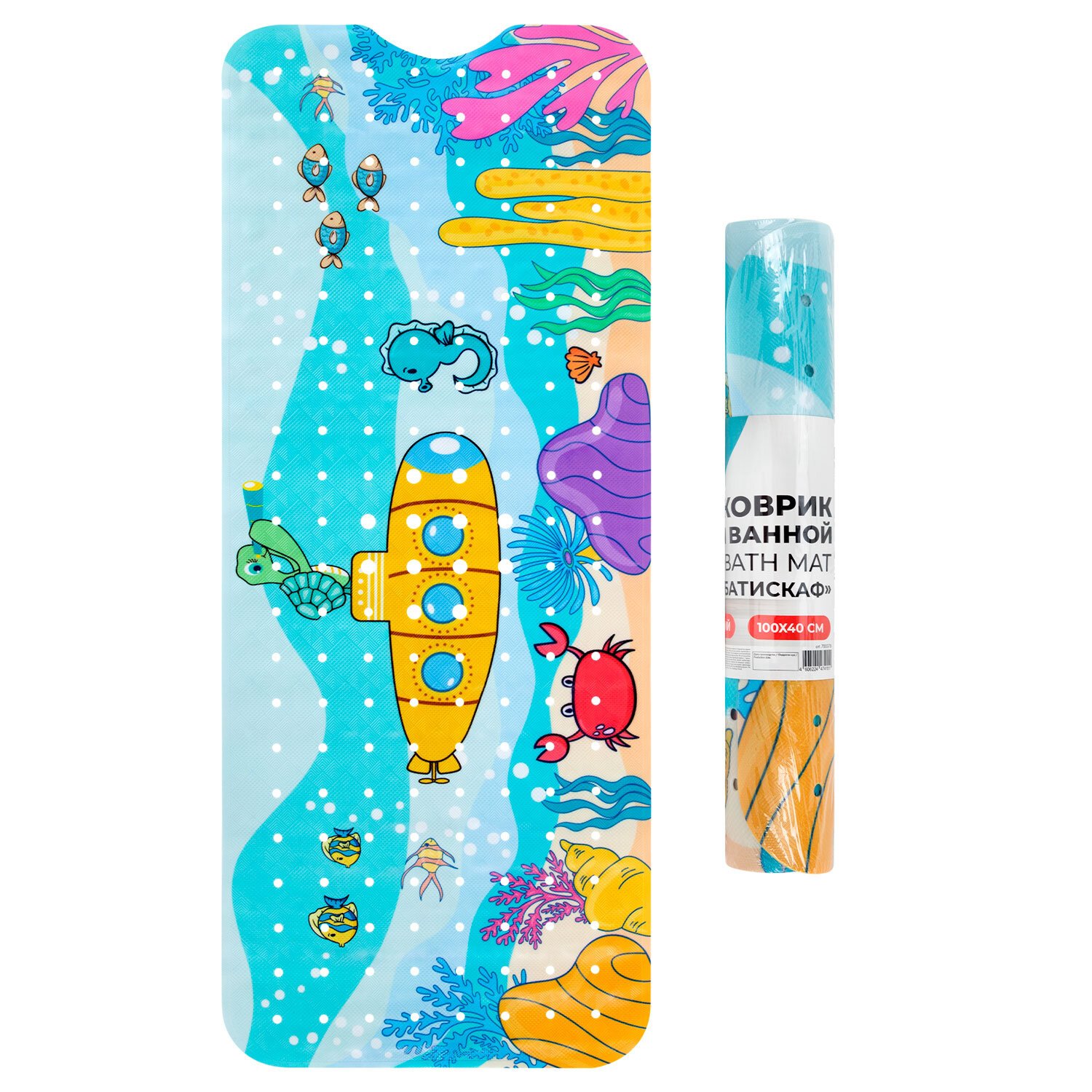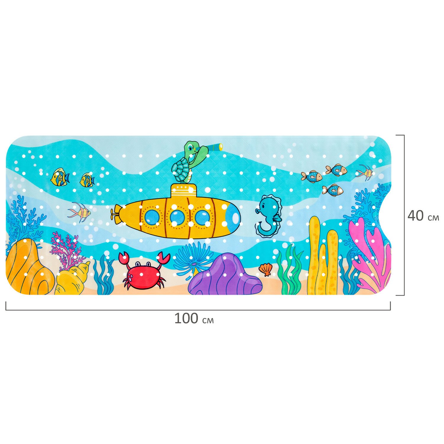 Коврик для ванны противоскользящий 100х40см с рисунком "Батискаф", ПВХ, присоски, PRIMILA, 700378