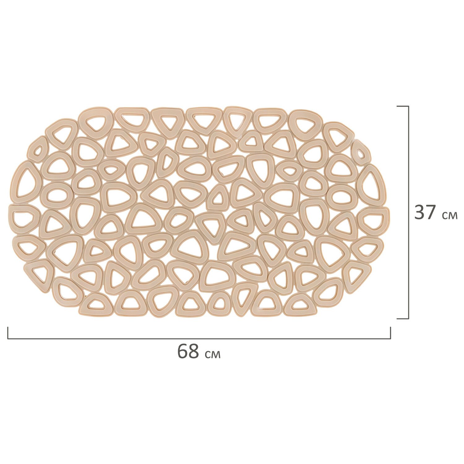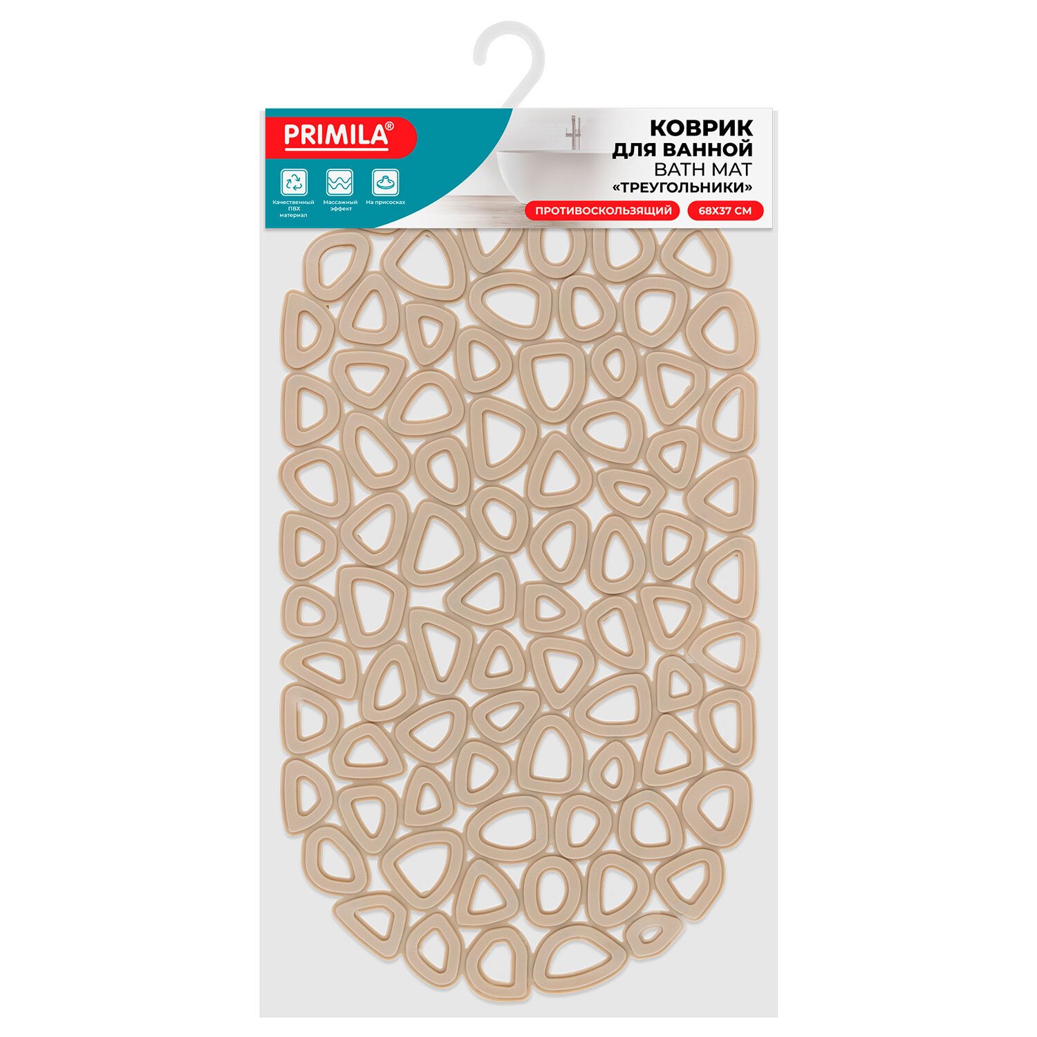 Коврик для ванны противоскользящий 68х37см, "Треугольники", овальный, бежевый, ПВХ, PRIMILA, 700380