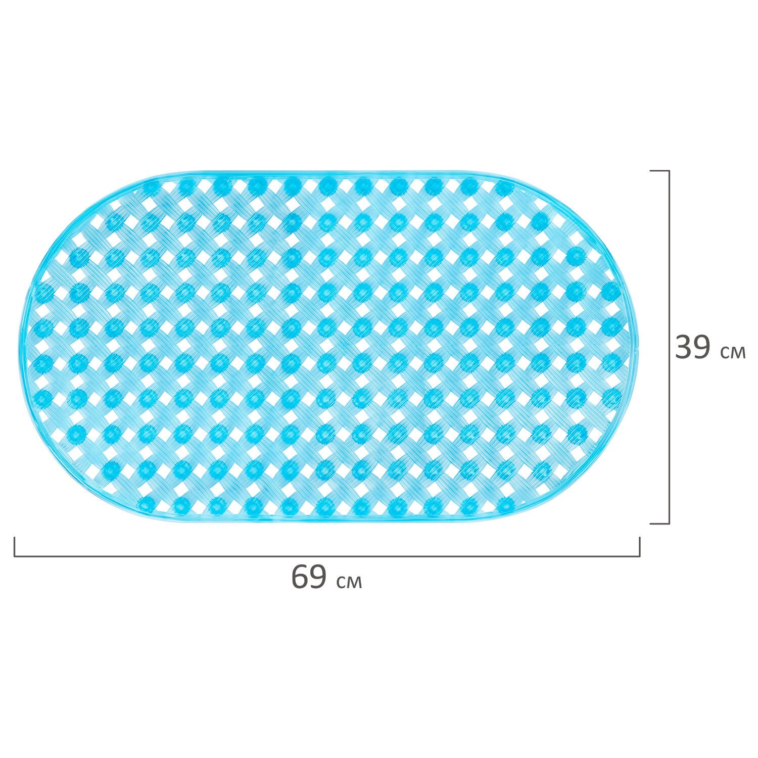 Коврик для ванны противоскользящий 69х39см, "Ротанг", овальный, голубой, ПВХ, PRIMILA, 700384