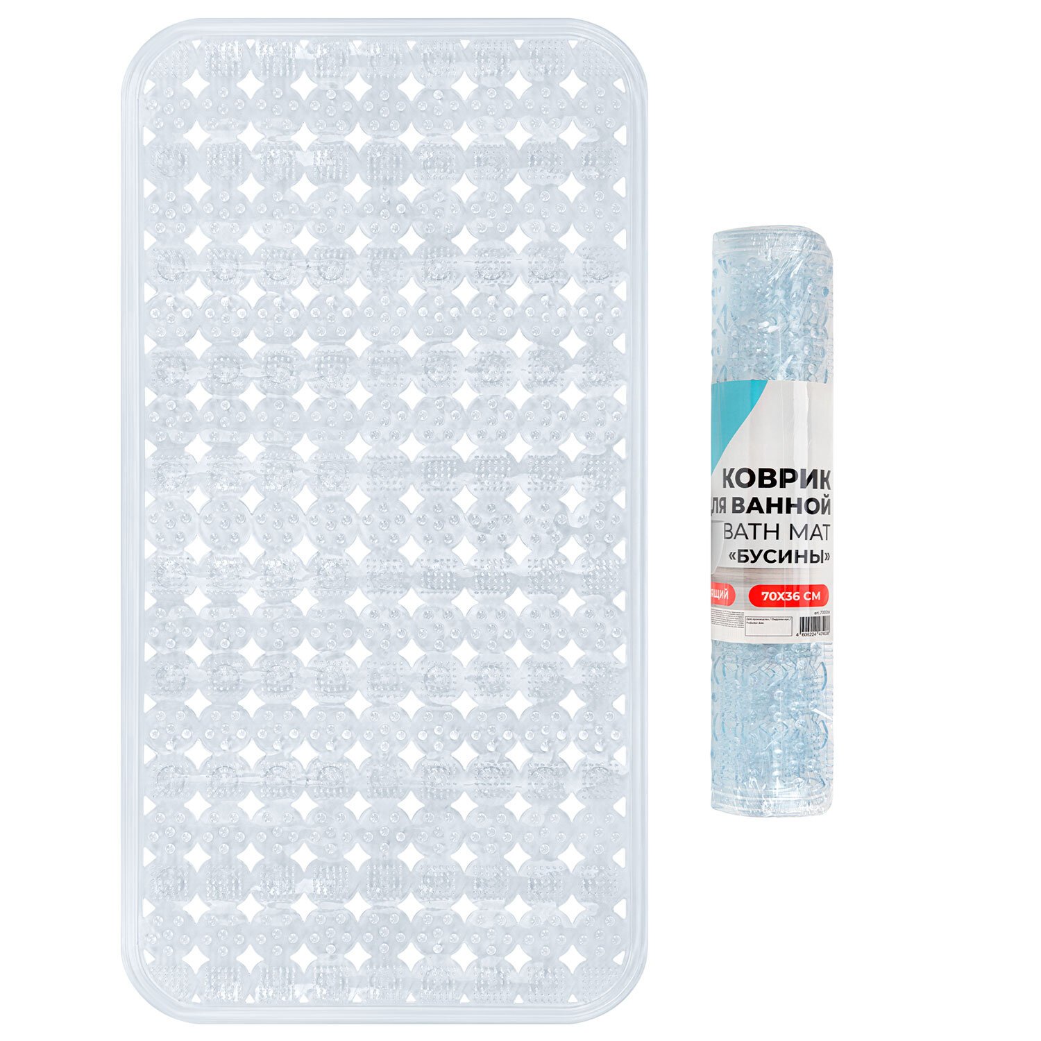 Коврик для ванны противоскользящий 70х36см, "Бусины", прозрачный, ПВХ, присоски, PRIMILA, 700366