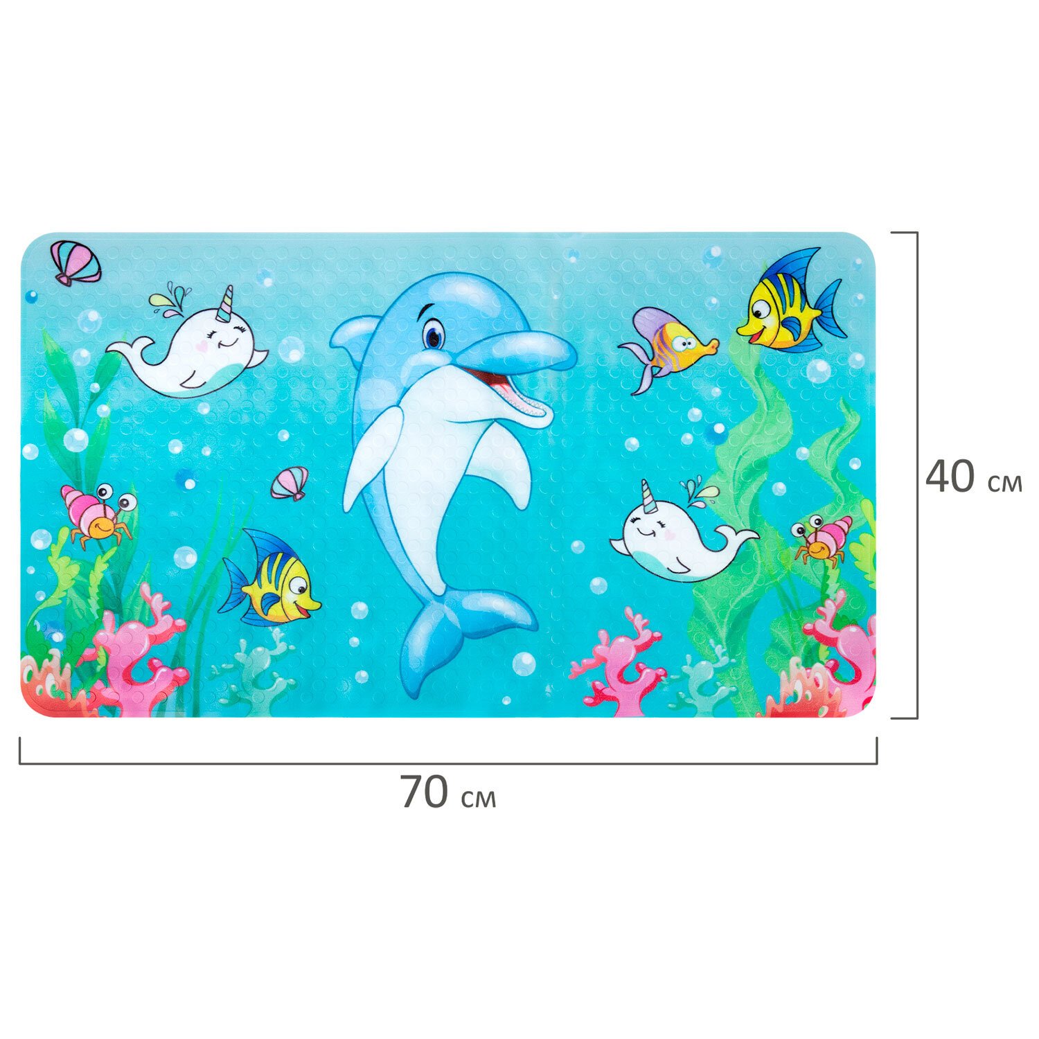 Коврик для ванны противоскользящий 70х40см с печатью "Дельфин", ПВХ, присоски, PRIMILA, 700370
