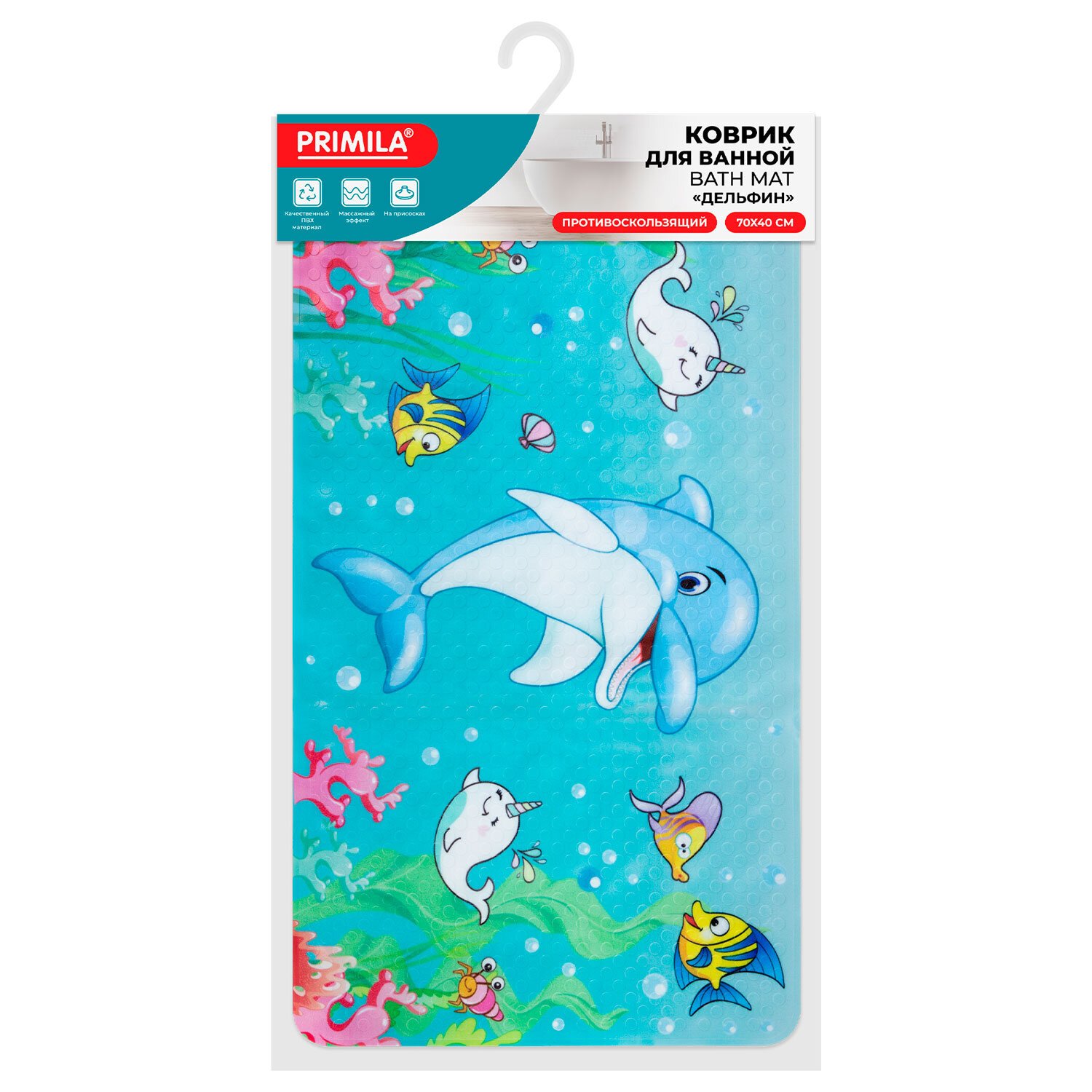 Противоскользящий коврик для ванны PRIMILA с детским рисунком "Дельфин" - безопасность и радость во время купания. Предназначен для защиты от падений во время водных процедур.