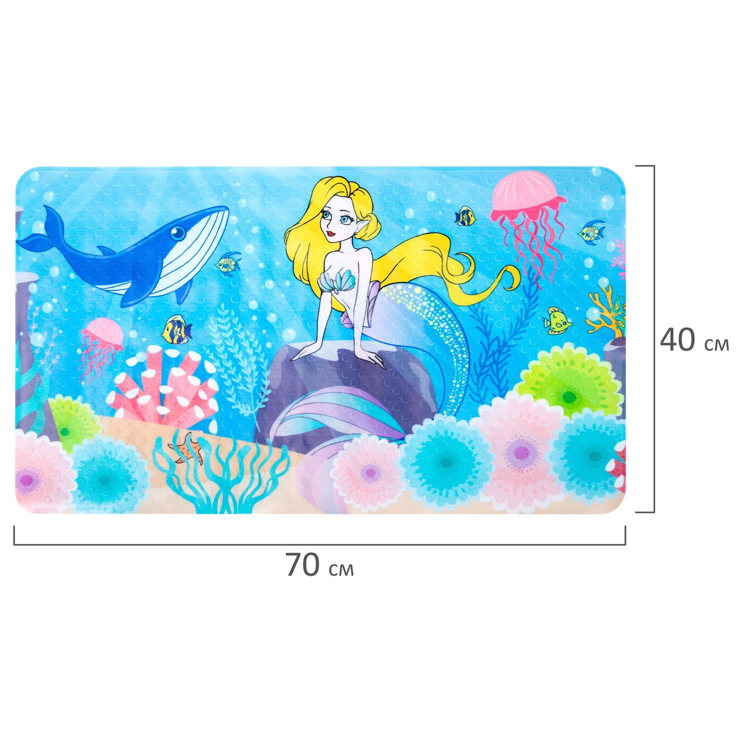 Коврик для ванны противоскользящий 70х40см с печатью "Русалка", ПВХ, присоски, PRIMILA, 700371