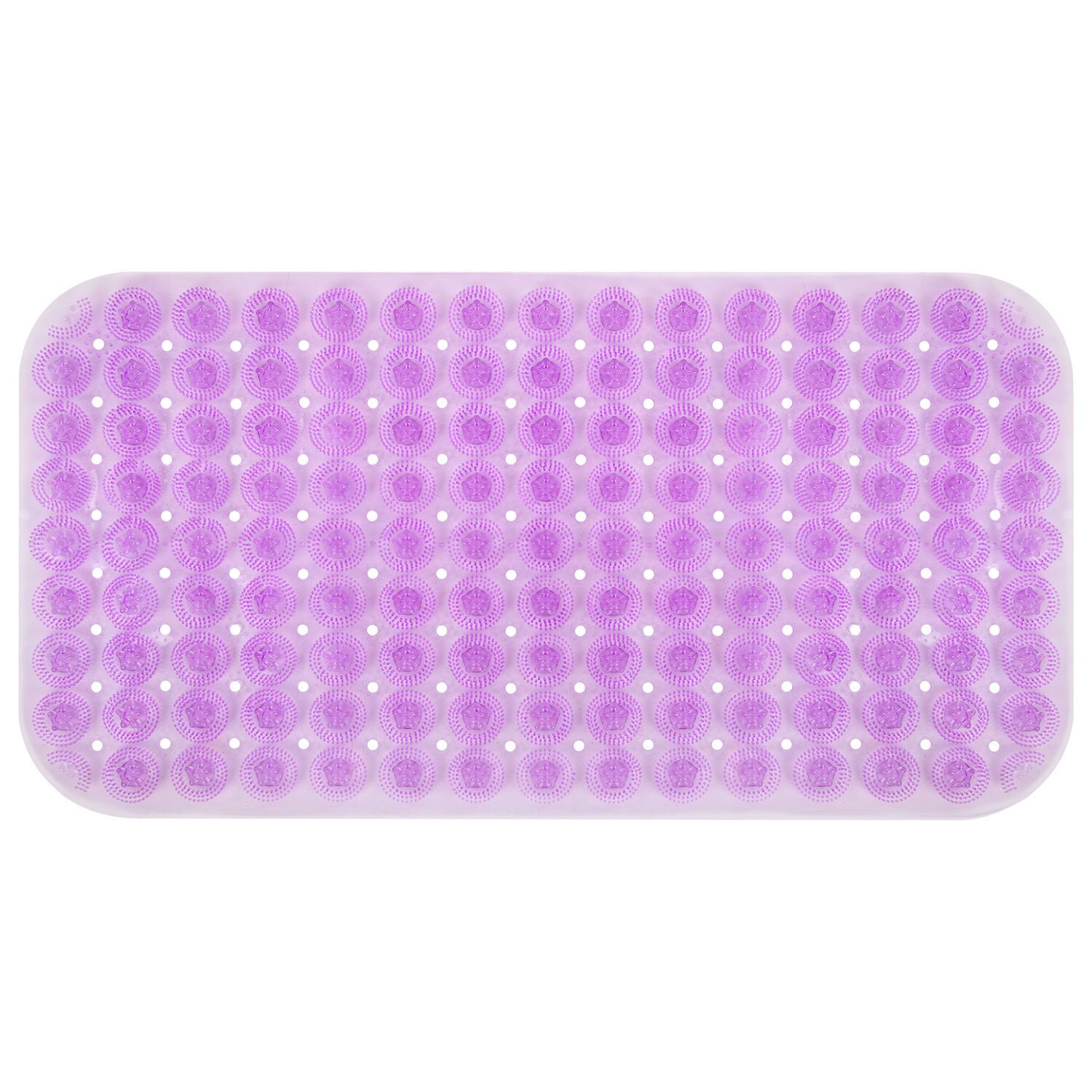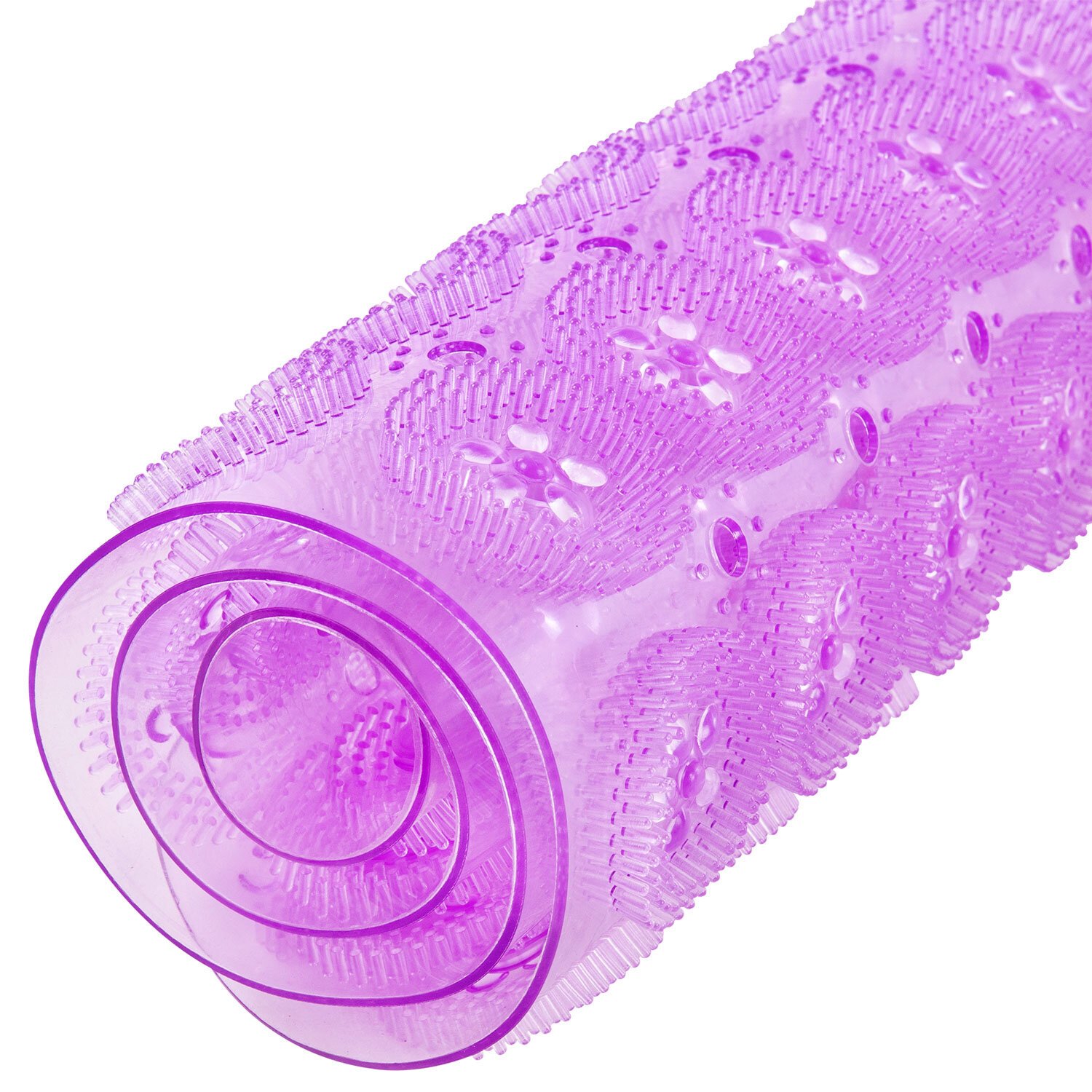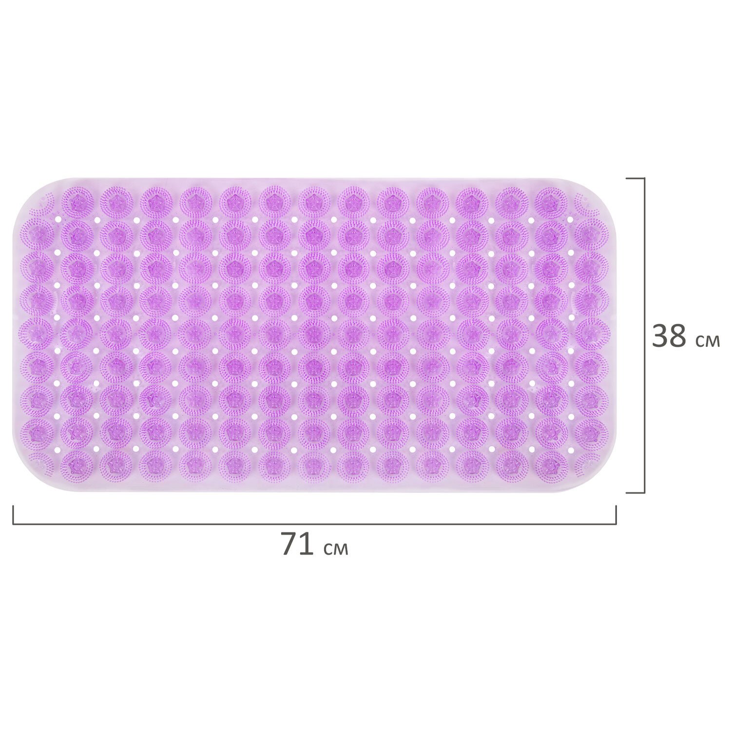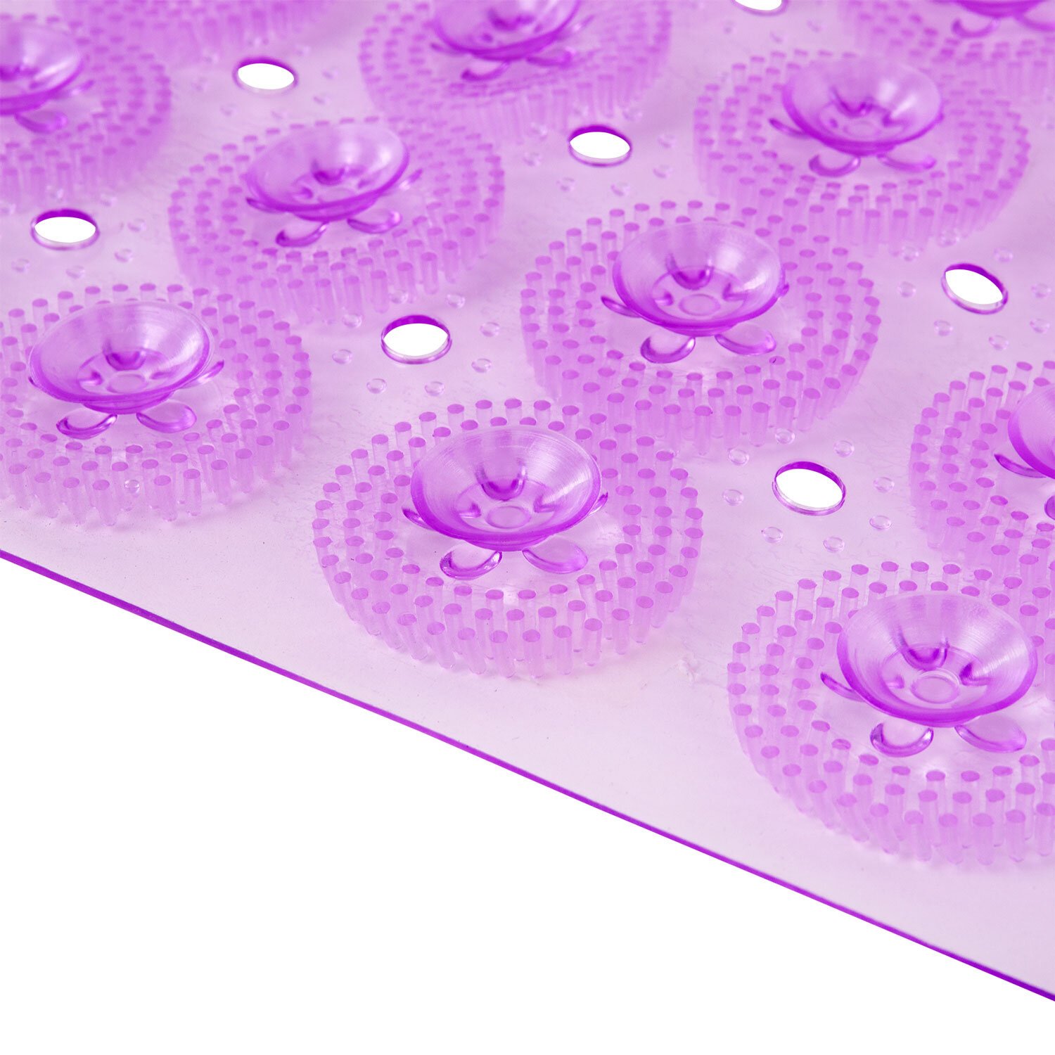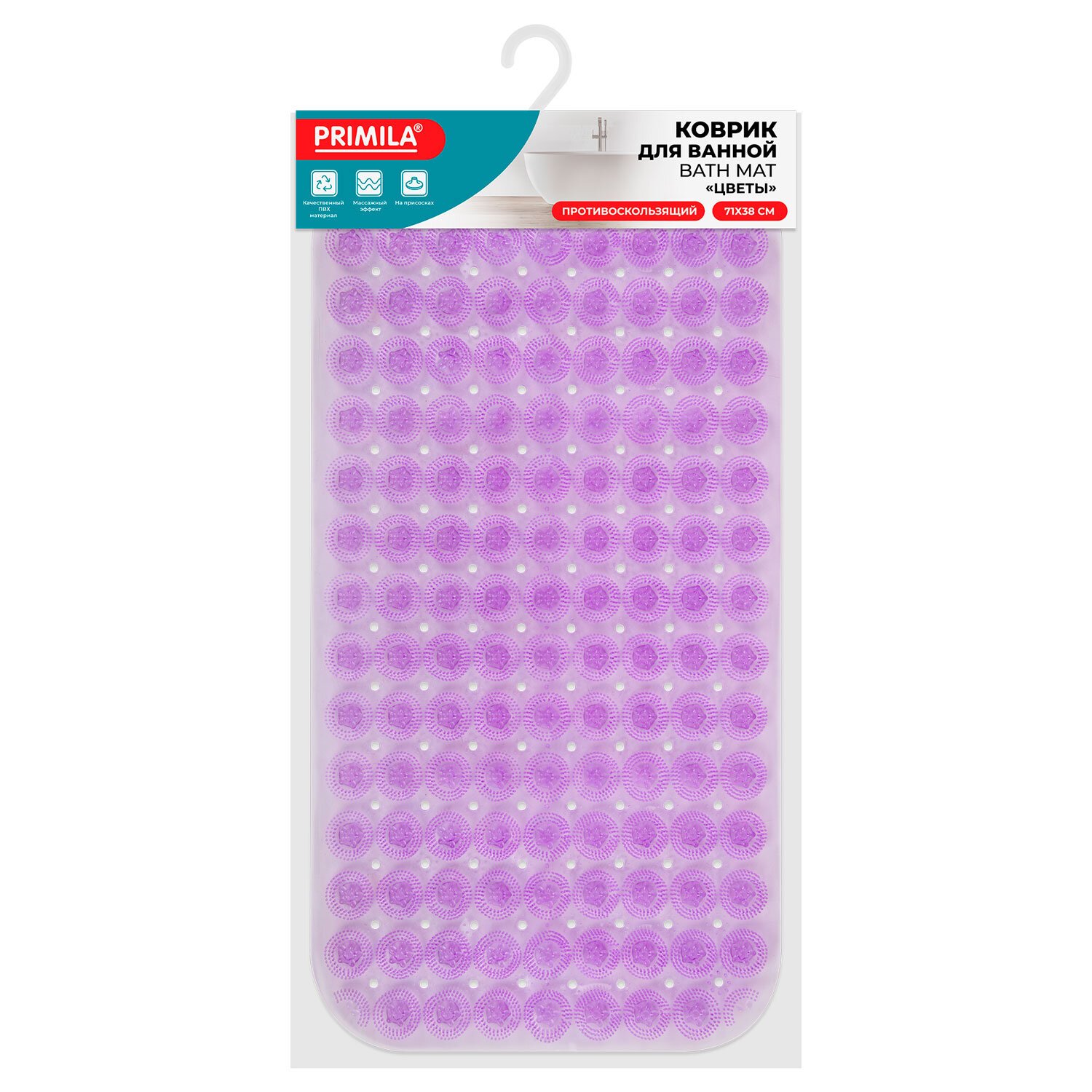 Коврик для ванны противоскользящий 71х38см, массажный, "Цветы", прозрачно-фиолетовый, ПВХ, PRIMILA, 700373