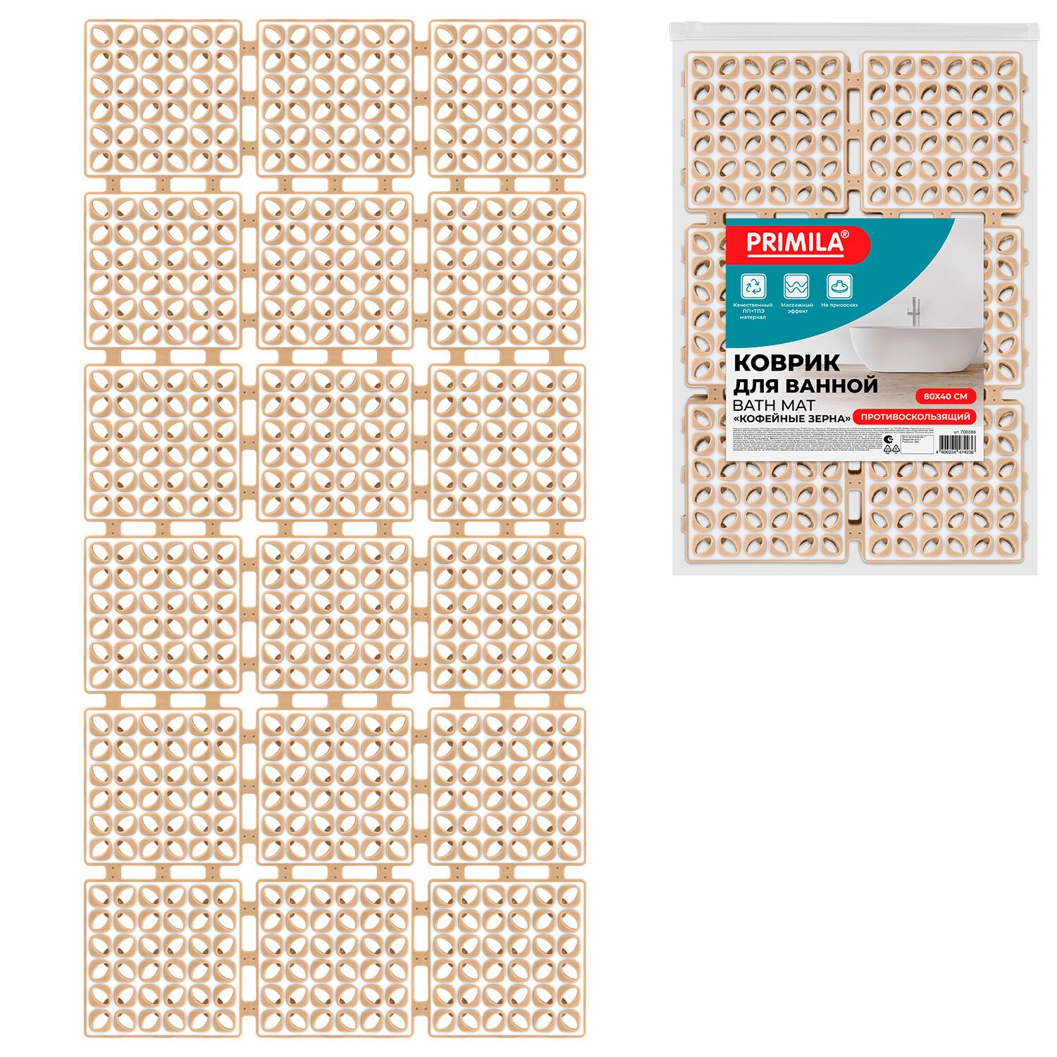 Коврик для ванны противоскользящий износостойкий 80х40см, "Кофейные зерна", ПП+ТПЭ, PRIMILA, 700386