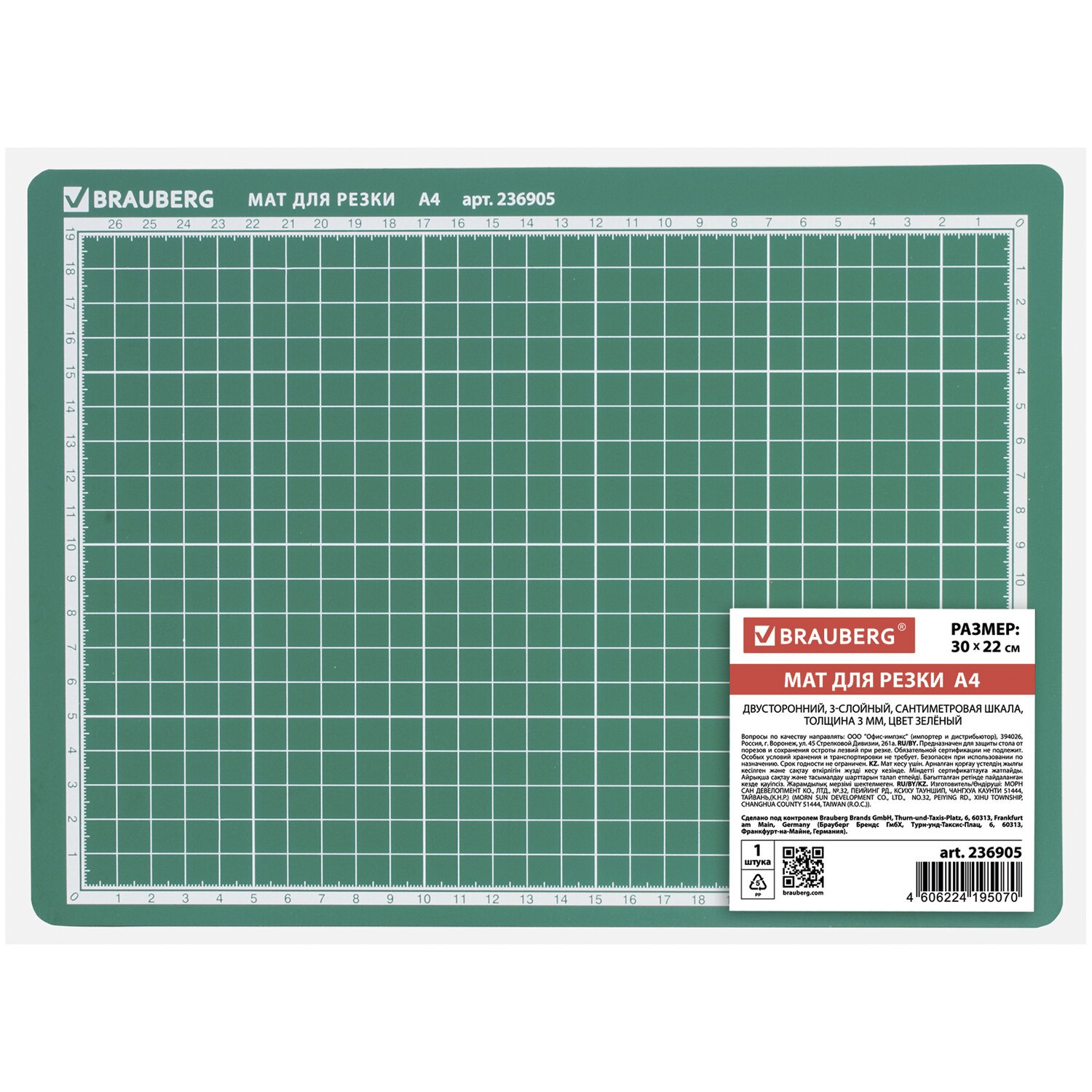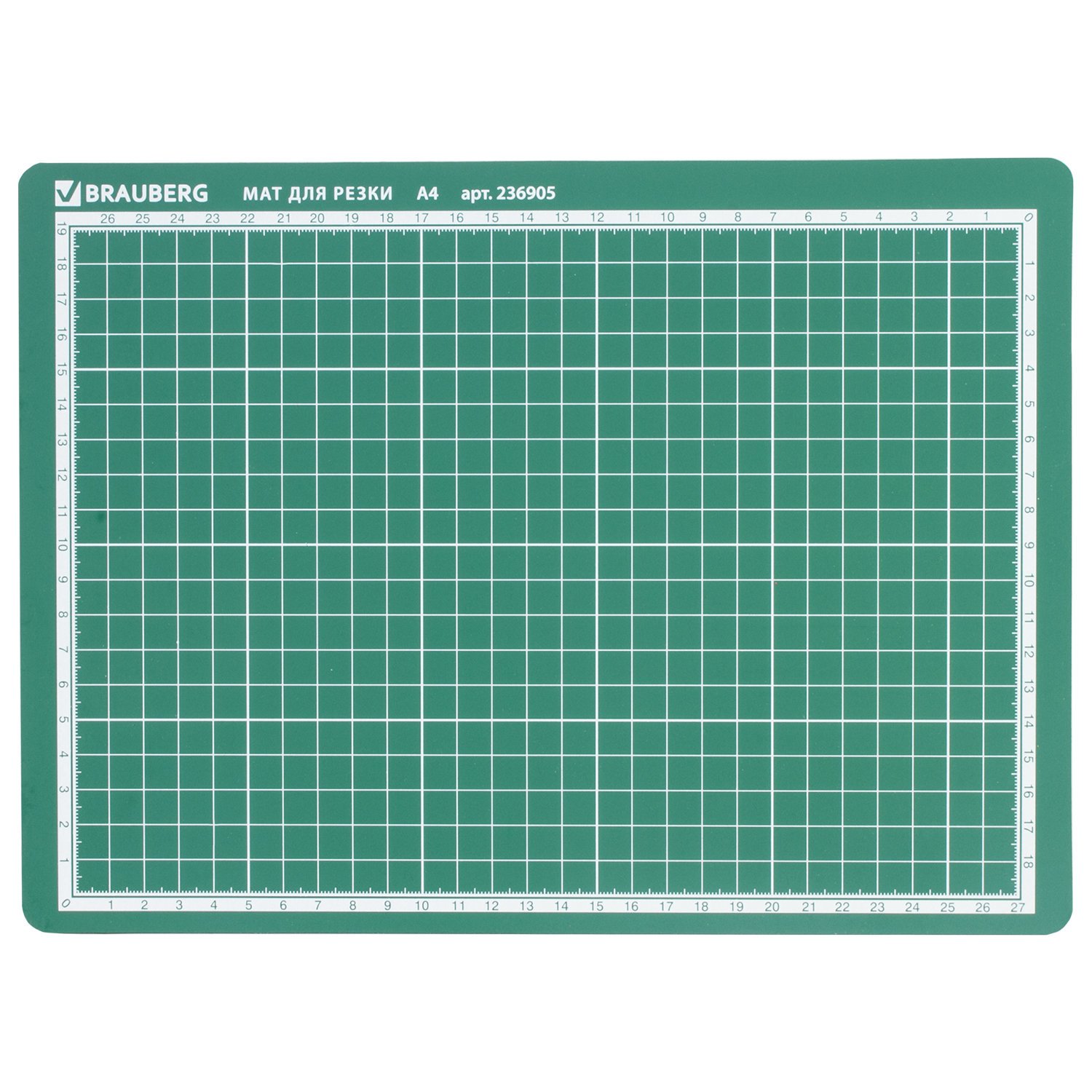 Коврик (мат) для резки BRAUBERG, 3-слойный, А4 (300х220 мм), двусторонний, толщина 3 мм, зеленый, 236905