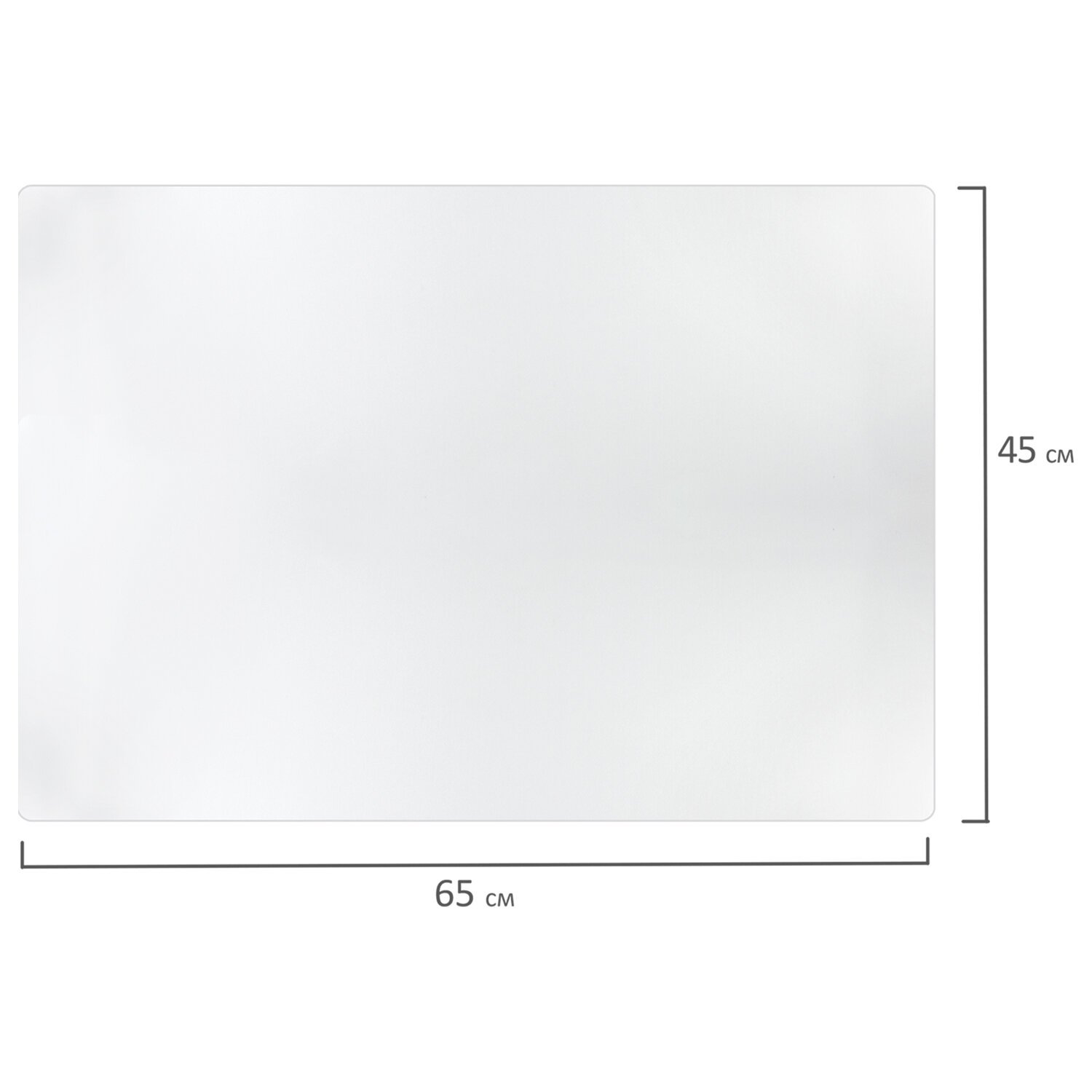 Коврик размером 45х65 см выполнен из полиэтилена. Прочный прозрачный матовый материал толщиной 0,8 мм предохранит столешницу от разного рода повреждений и обеспечит удобство при письме. Поставляется в индивидуальной упаковке.