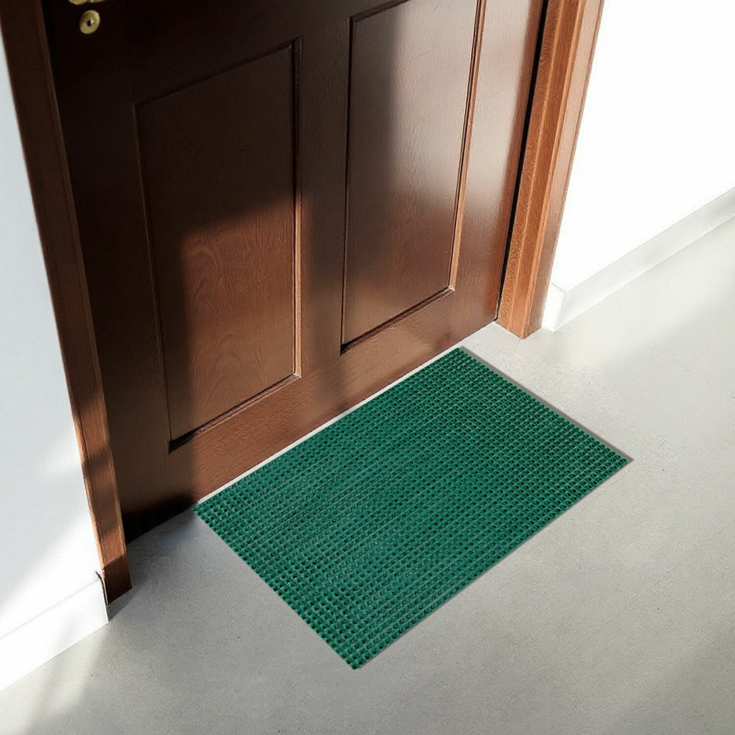 Коврик придверный 45х60см ЗЕЛЕНЫЙ пластиковый грязезащитный, толщина 14мм, "ТРАВКА",, 701065