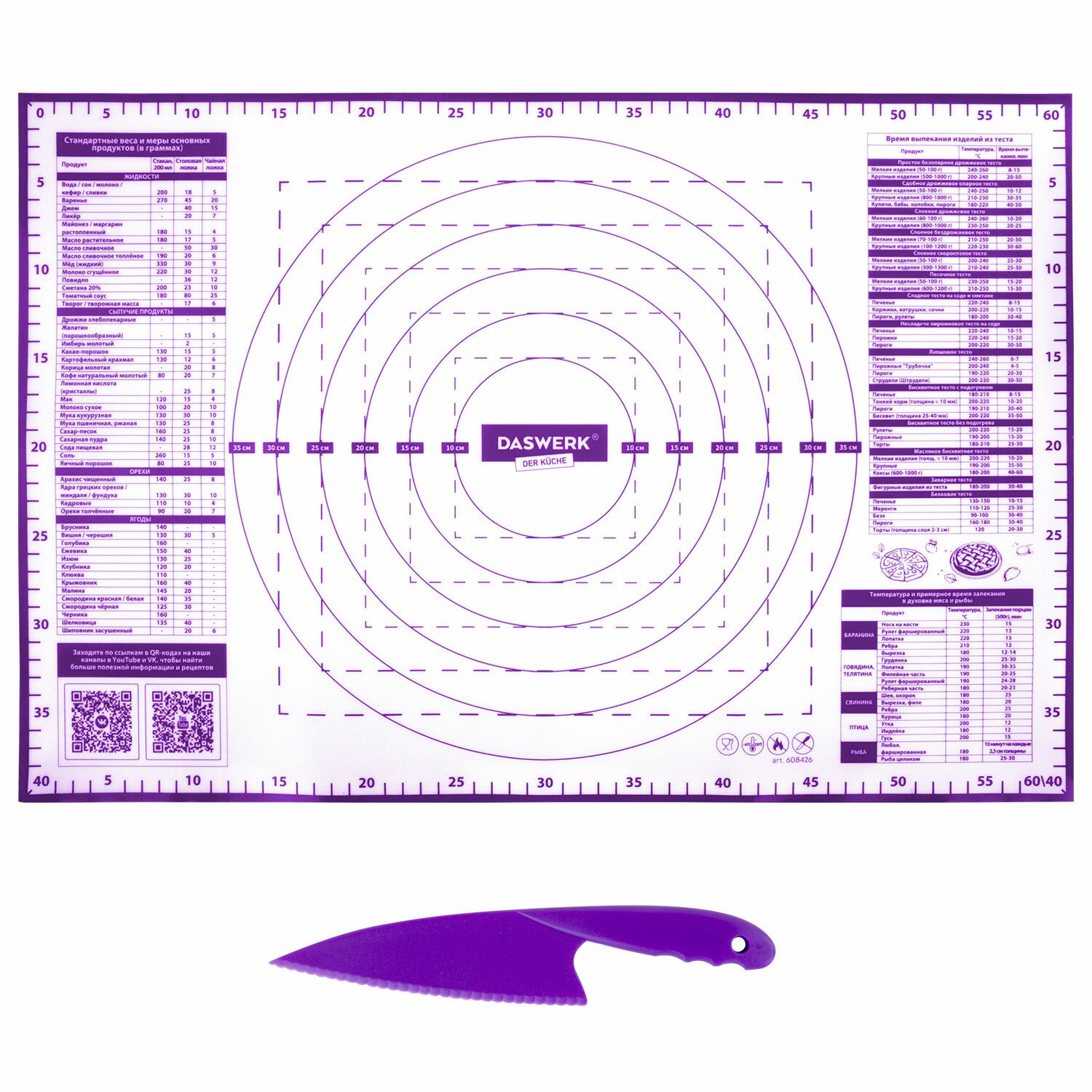 Коврик силиконовый для раскатки/запекания 40х60 см, фиолетовый, ПОДАРОК пластиковый нож, DASWERK, 608425