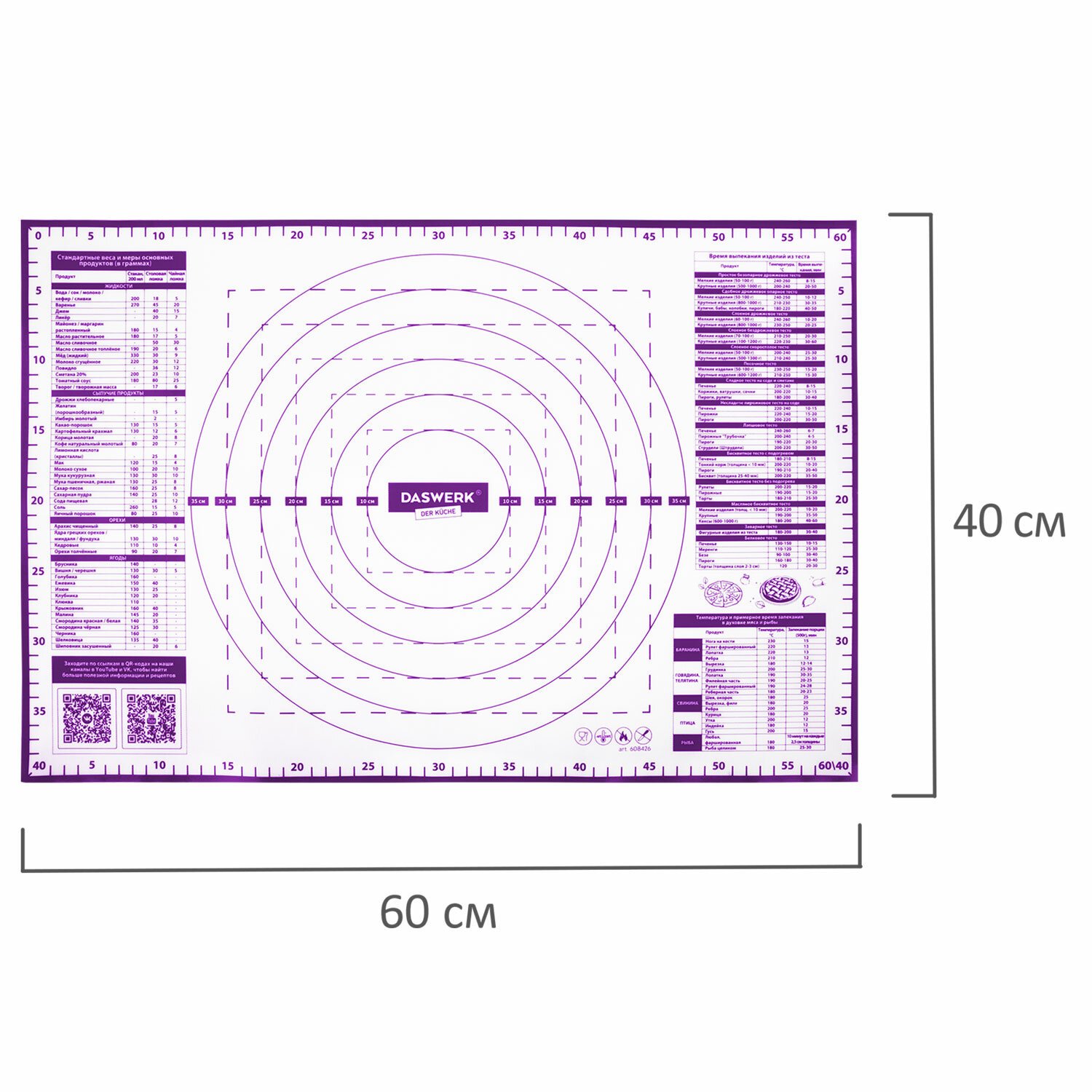 Коврик силиконовый для раскатки/запекания 30х40 см, фиолетовый, DASWERK, 608423