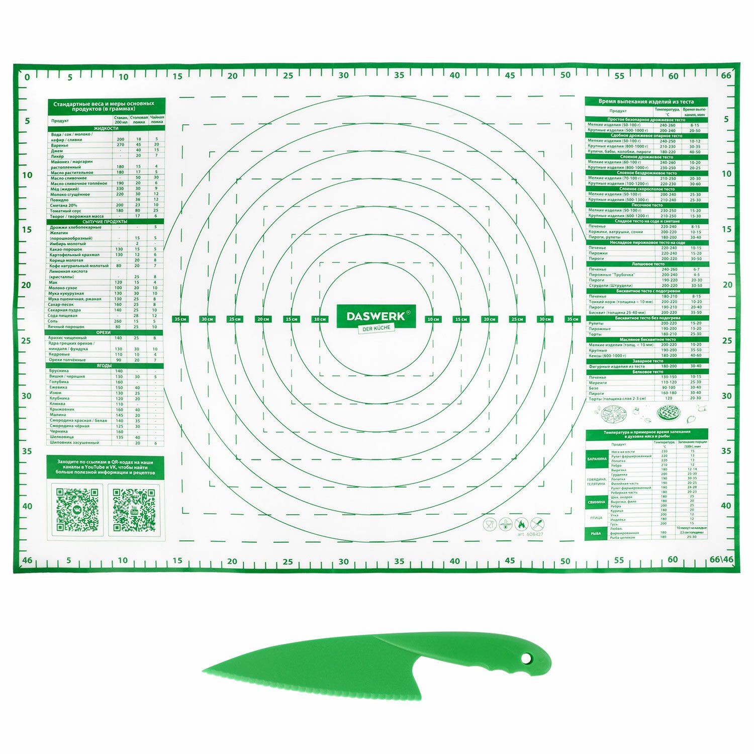 Коврик силиконовый для раскатки/запекания 46х66 см, зеленый, ПОДАРОК пластиковый нож, DASWERK, 608428