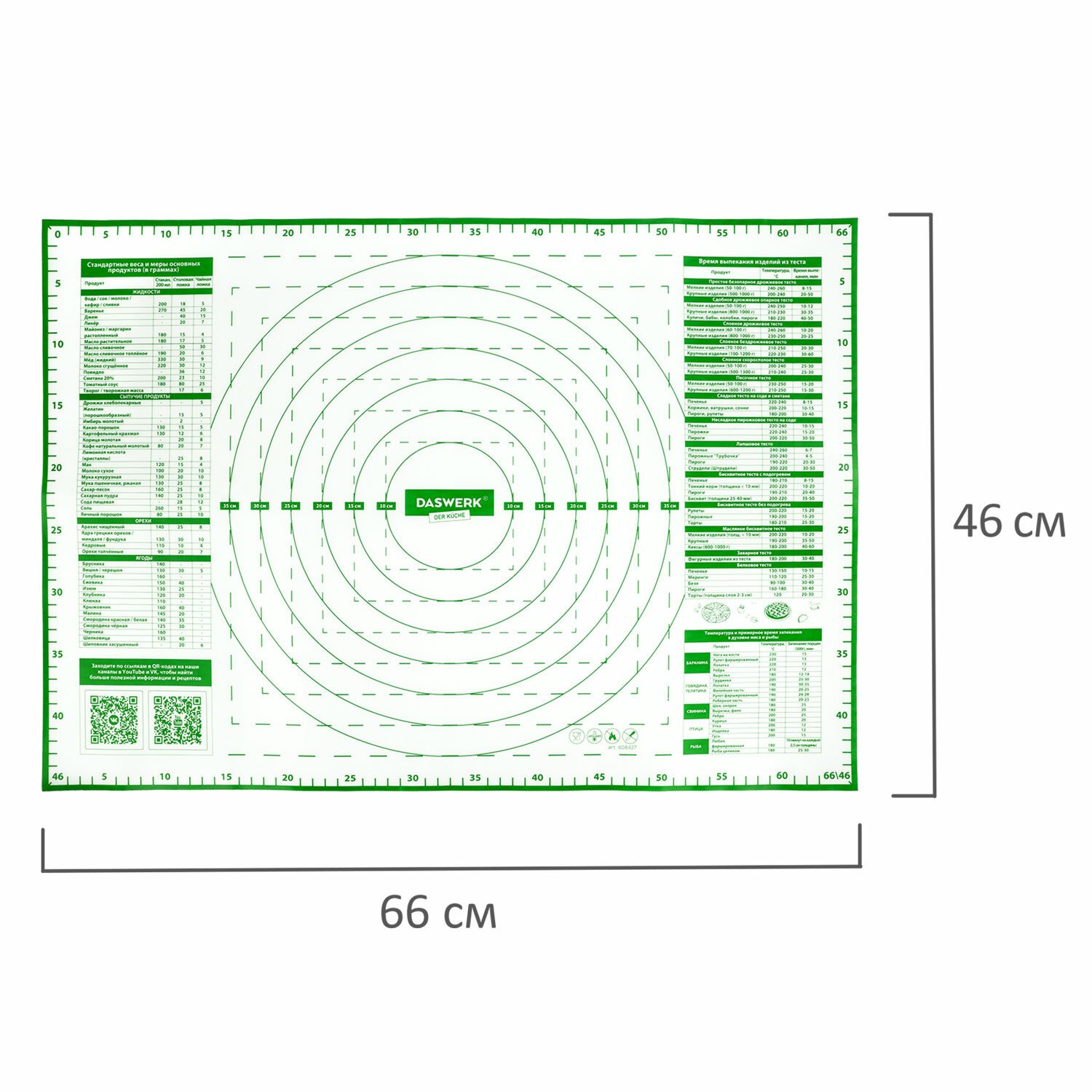 Силиконовый коврик DASWERK - это многофункциональная кухонная принадлежность, необходимая каждой хозяйке. Коврик облегчает процесс приготовления и помогает сохранить чистоту и порядок на кухне.