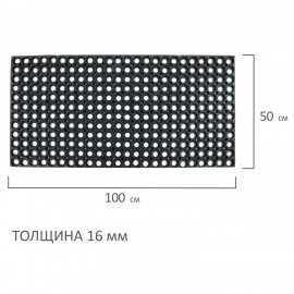 Коврик входной резиновый крупноячеистый грязезащитный, 50х100 см, толщина 16 мм, черный, VORTEX