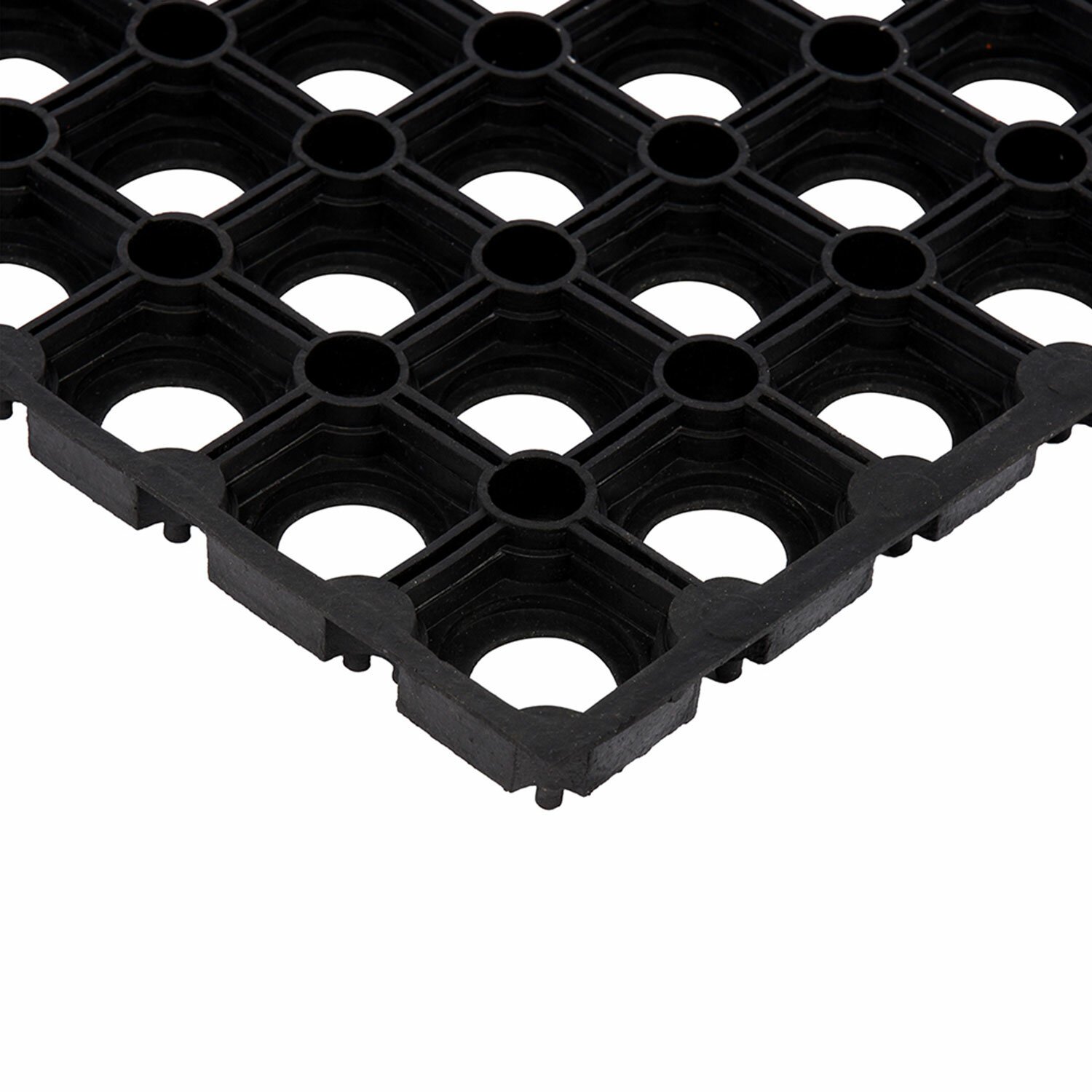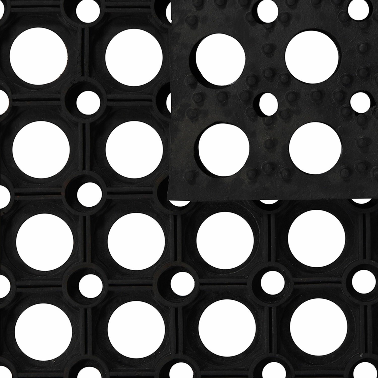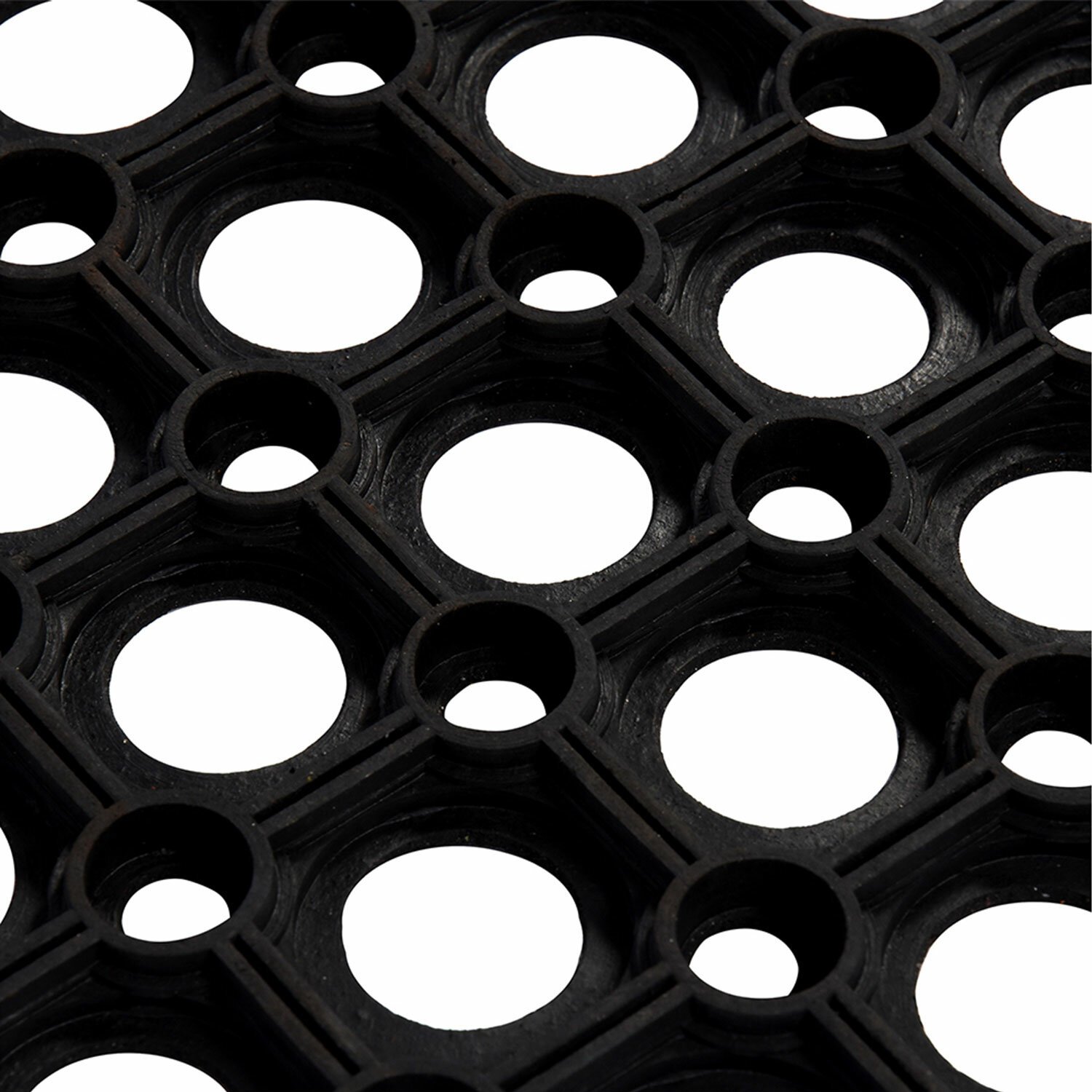 Крупноячеистое резиновое покрытие защищает помещение от уличной грязи.