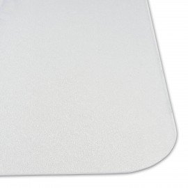 Прямоугольный коврик размером 100х120 см изготовлен из прозрачного поликарбоната толщиной 1,8 мм, устойчив к механическим воздействиям, не желтеет со временем, нетоксичен. Имеет шероховатую поверхность - шагрень. Можно использовать на полах с подогревом.