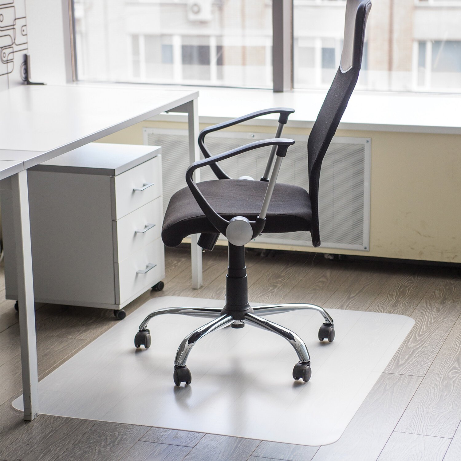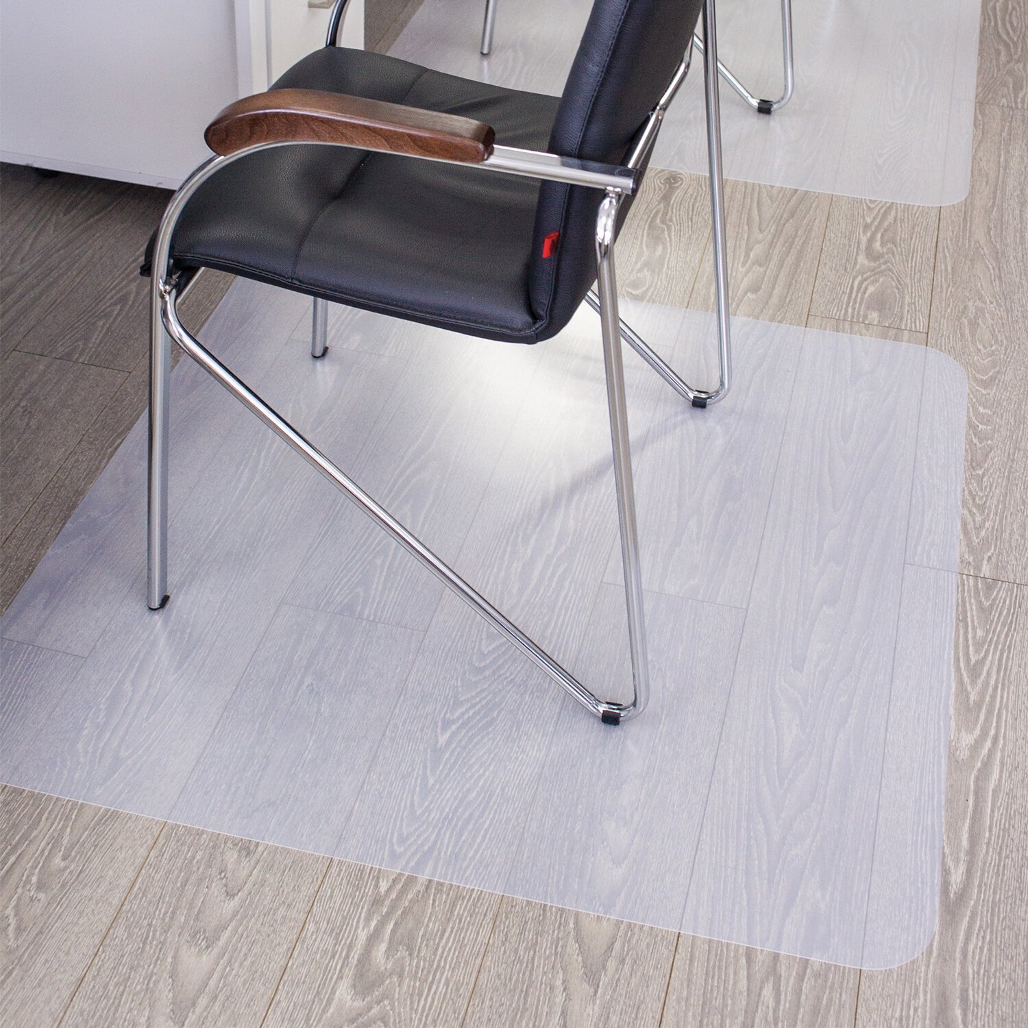 Является экологически чистым. Подходит для твердых покрытий — паркета, линолеума, ламината, керамической плитки. Пожаробезопасный (можно использовать на полу с подогревом). Прямоугольный коврик размером 90х120 см изготовлен из прозрачного полипропилена толщиной 1,2 мм.